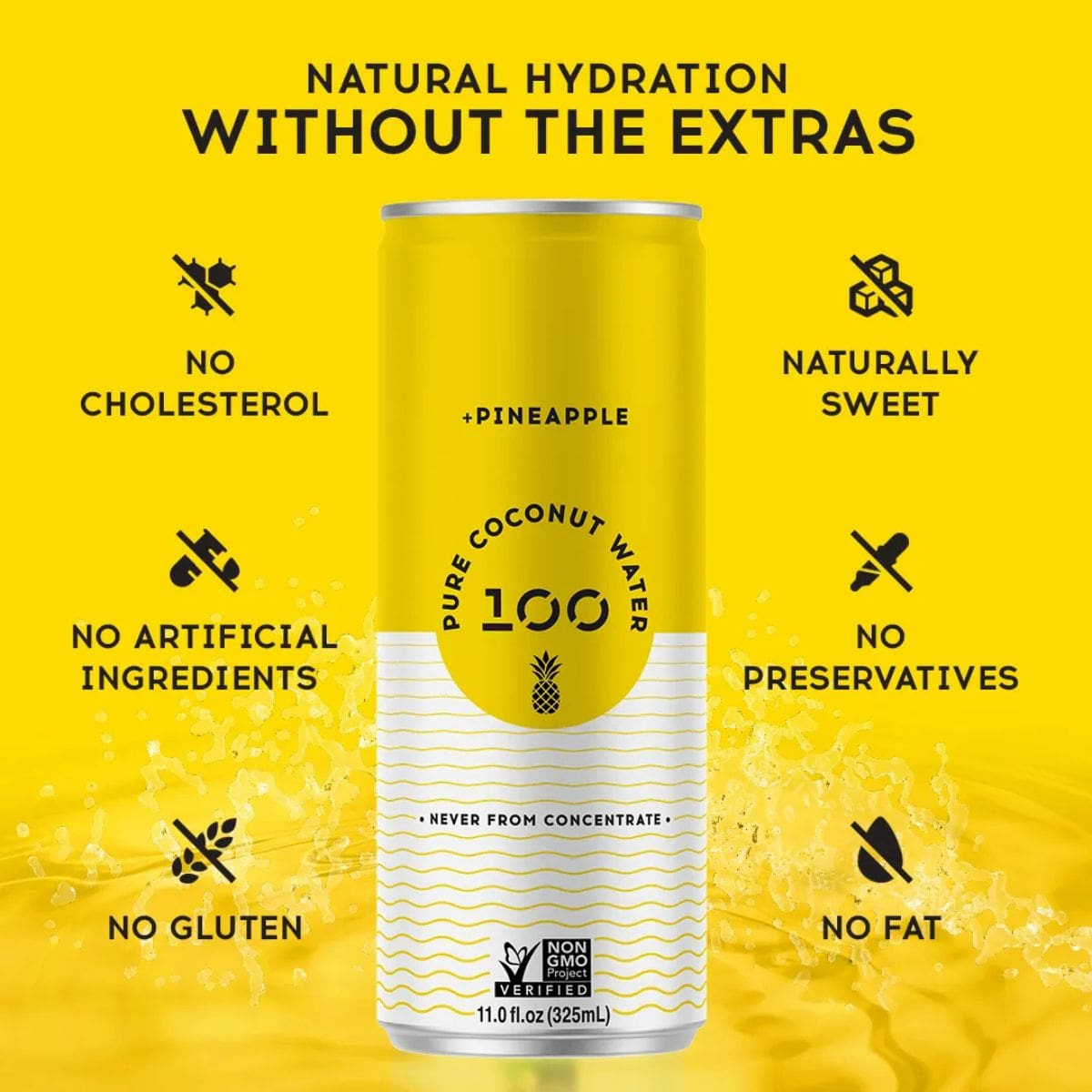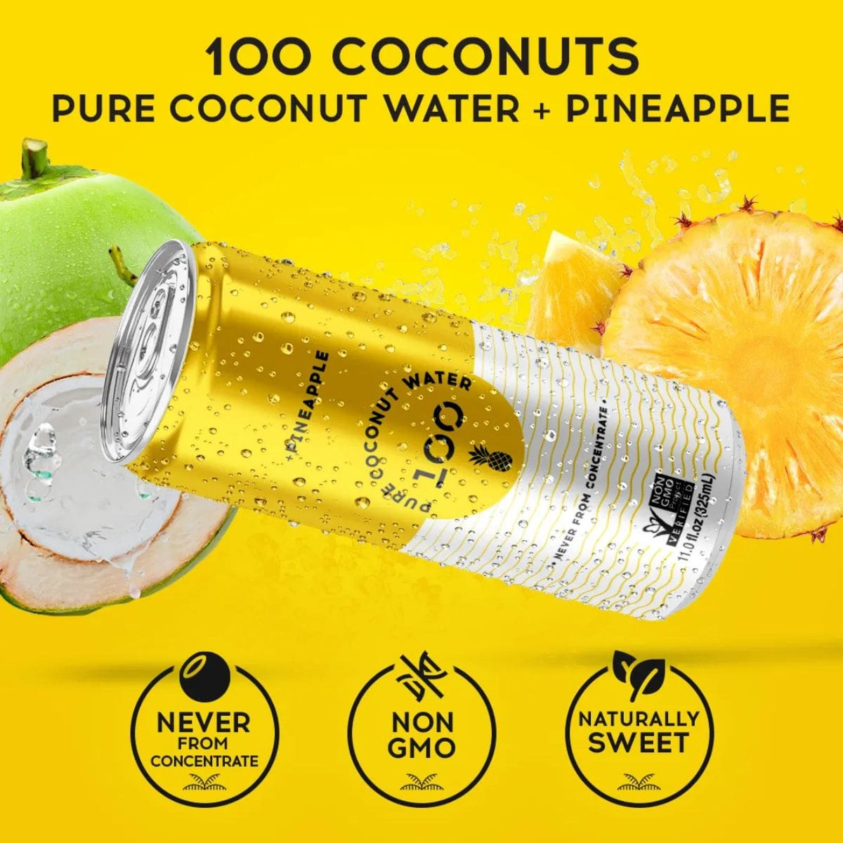 This coconut juice blend in a can is perfect for making refined sugar free mixed drinks at your next party, or just enjoyed straight out of the can for pure pineapple coconut refreshment. 100 Coconuts has you covered with their line of pure coconut water drinks never from concentrate. What are you waiting for?