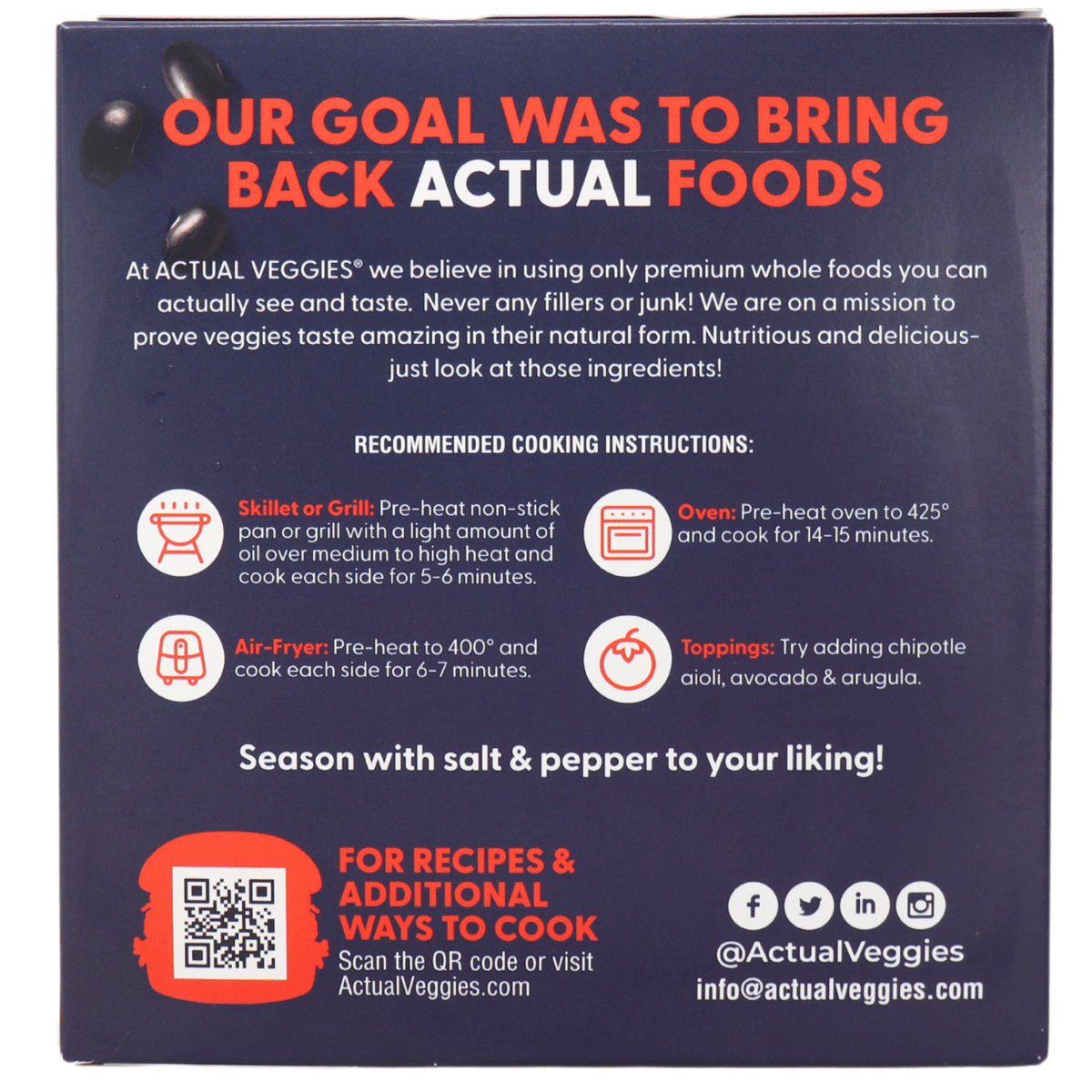 Vegan, soy-free, and made without added sugars or processed fillers, it’s the perfect patty for anyone craving more plants in their weeknight rotation. Whether you're meal prepping for the week or throwing something together for a last-minute BBQ, the Actual Veggies Black Bean Burger delivers real food, real flavour, and nothing fake.