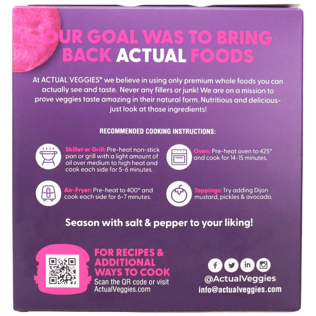 Vegan, soy-free, and made without added sugars or artificial binders, it’s the perfect veggie burger for anyone looking to eat more plants without giving up BBQ night. Whether you’re meal prepping lunches or building a stacked beet burger for dinner, the Actual Veggies Purple Root Burger delivers real veggie burgers with real veggies, ready to make vegan dinner easy.