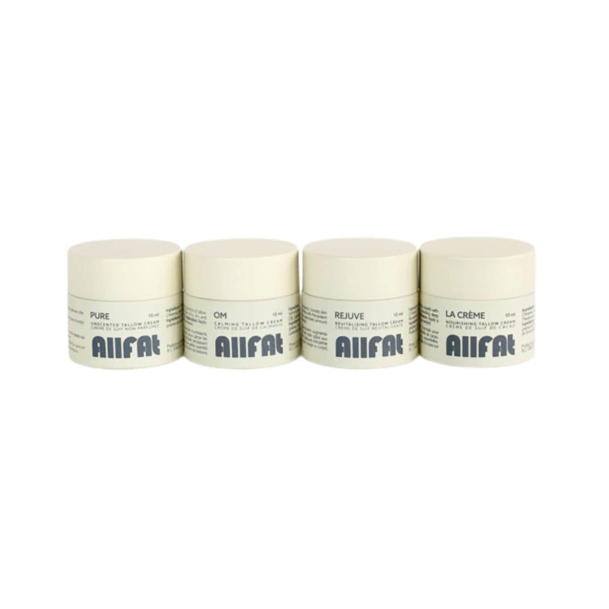 Upgrade your skincare with the ALLFAT Skincare Tallow Cream Variety Pack! Four 10ml creams, 100% grass fed tallow and organic ingredients. Your go to for natural skincare. Hydration, repair, and rejuvenation.