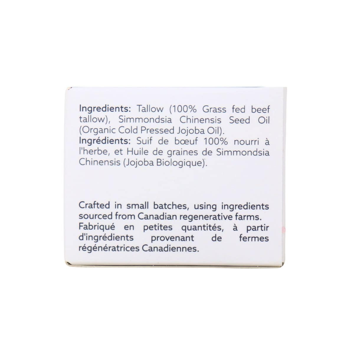 Tallow (100% Grass fed beef tallow), Simmondisa Chinensis seed oil (organic cold pressed Jojoba oil).