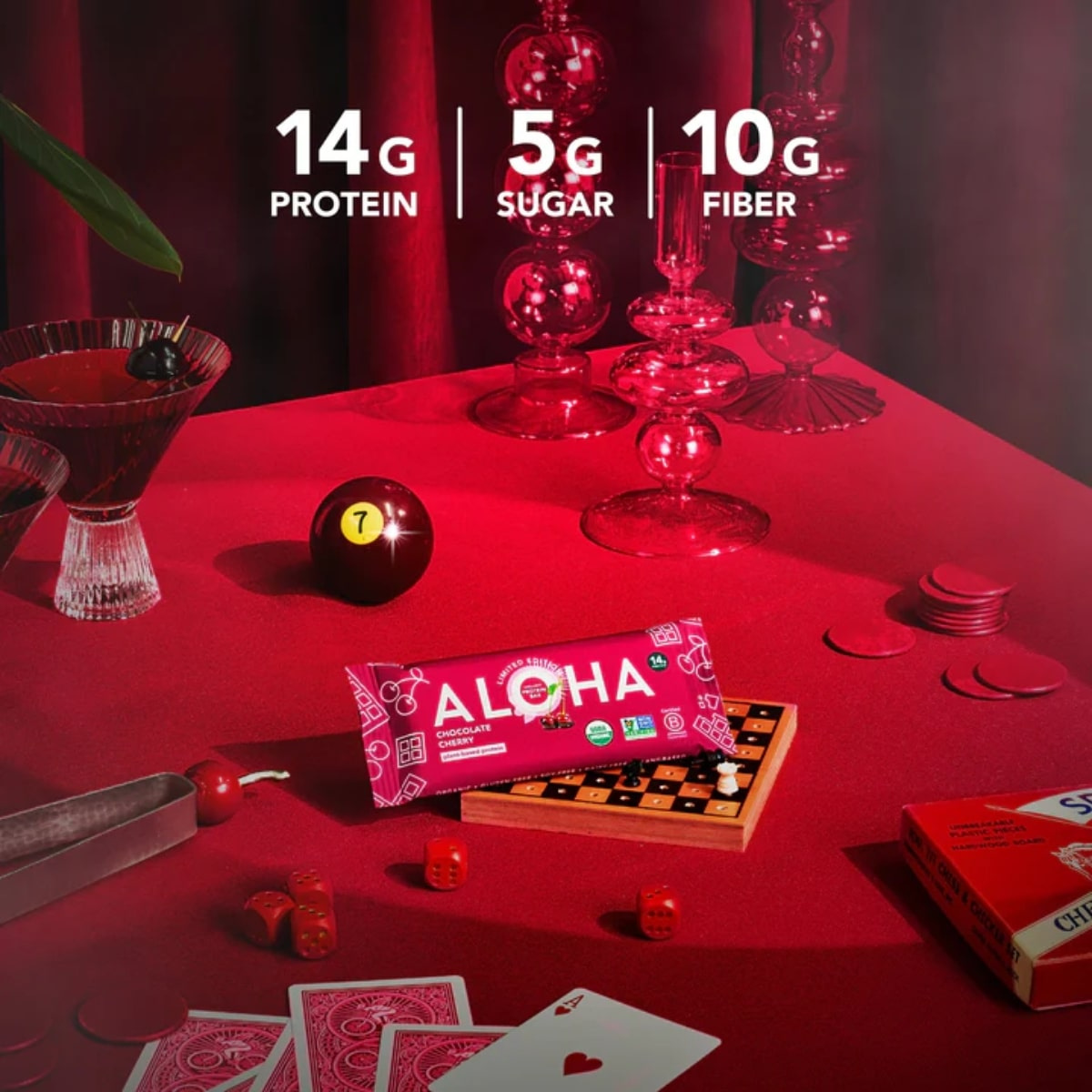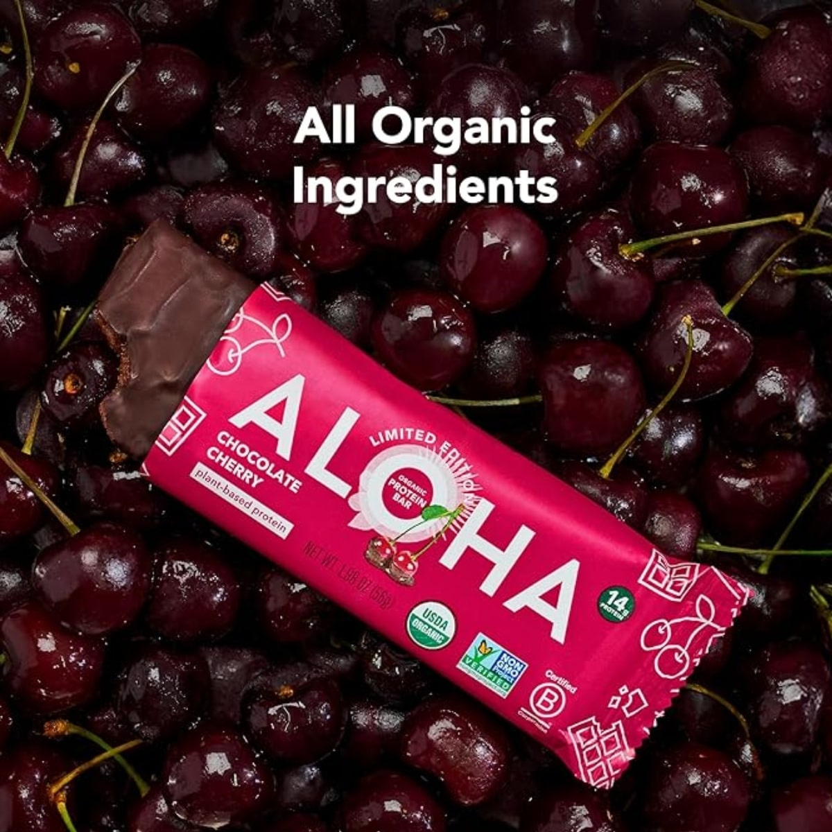 ALOHA’s Organic Plant-Based Chocolate Cherry Protein Bar delivers all the indulgence of a chocolate-covered cherry, but in a clean, nourishing format. Each bar combines real, tangy cherries with a rich chocolate coating and a soft, chewy centre made from a blend of organic plant proteins.