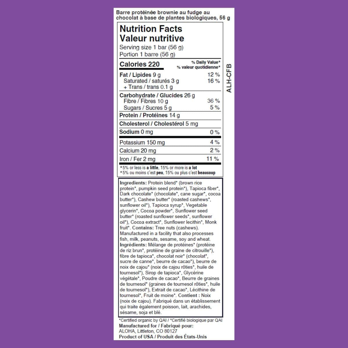 ALOHA’s protein bar takes everything you love about an indulgently decadent chocolate fudge brownie, but makes it even better! The moment you unwrap this plant-based protein bar, the room will fill with the aroma of rich cocoa powder, organic dark chocolate, and creamy cashew butter. It's like a chocolatey dream come true–no baking required! Packed with 14g of plant-based protein and 10g of fibre, ALOHA bars let you ditch the oven and dive into the world of fudgy, chocolatey goodness that fits right in your pocket!