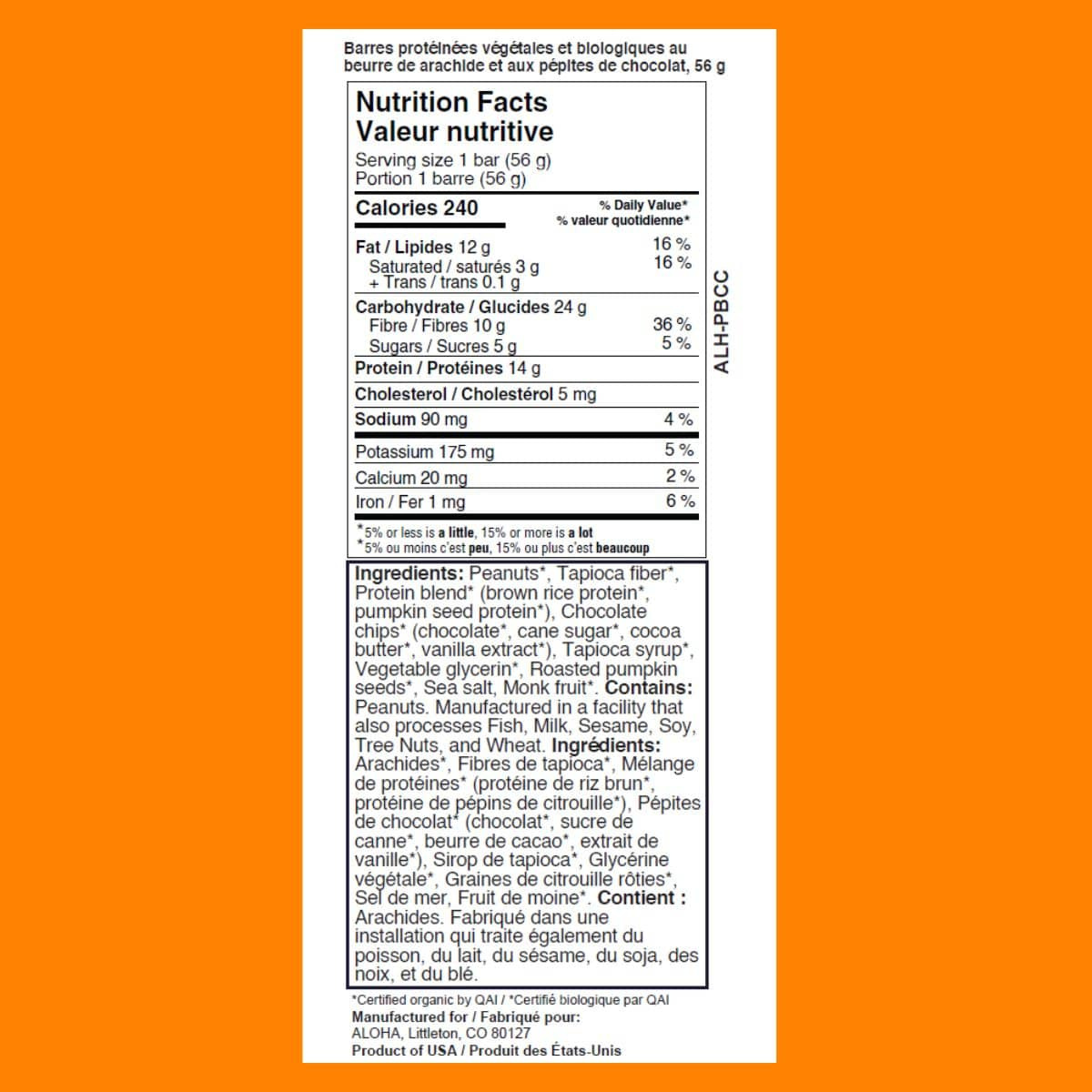 ALOHA Organic Plant-Based Protein Bar Peanut Butter Chocolate Chip, 56g
