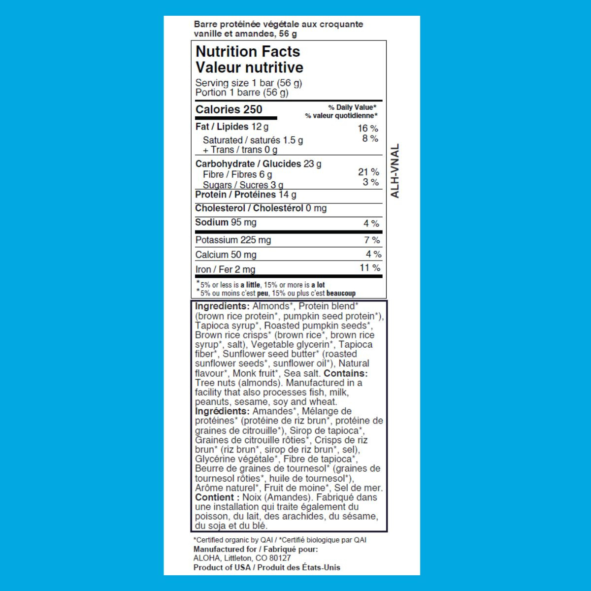 ALOHA Organic Plant-Based Protein Bar Vanilla Almond Crunch, 56g