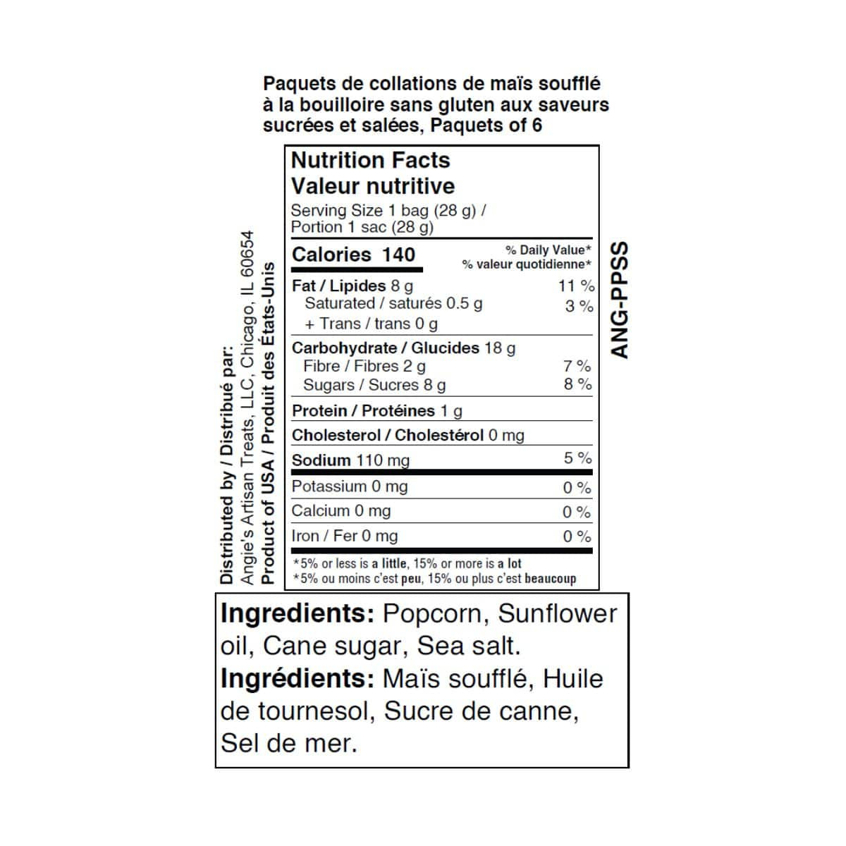 Popcorn, Sunflower Oil, Cane Sugar, Sea Salt
