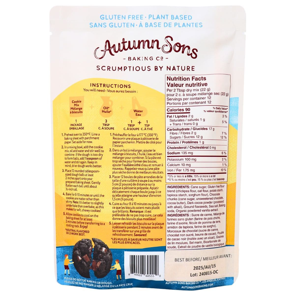 Calling all chocolate lovers! Enjoy double chocolate chunk cookies right in your house, while it smells like a bakery. Isn’t that a warm hug from childhood? Just add water and oil to Autumn Sons Baking Co. gluten-free cookie mix. Then sit back and watch your rich, chocolatey dreams come true! These decadent cookies are sure to make you feel like a kid again. Remember sneaking cookie dough from the bowl!? Bake up gluten-free cookies that are totally irresistible. The ultimate treat for any occasion. Or just a delicious snack for you! Go ahead, be the baker and indulge!!