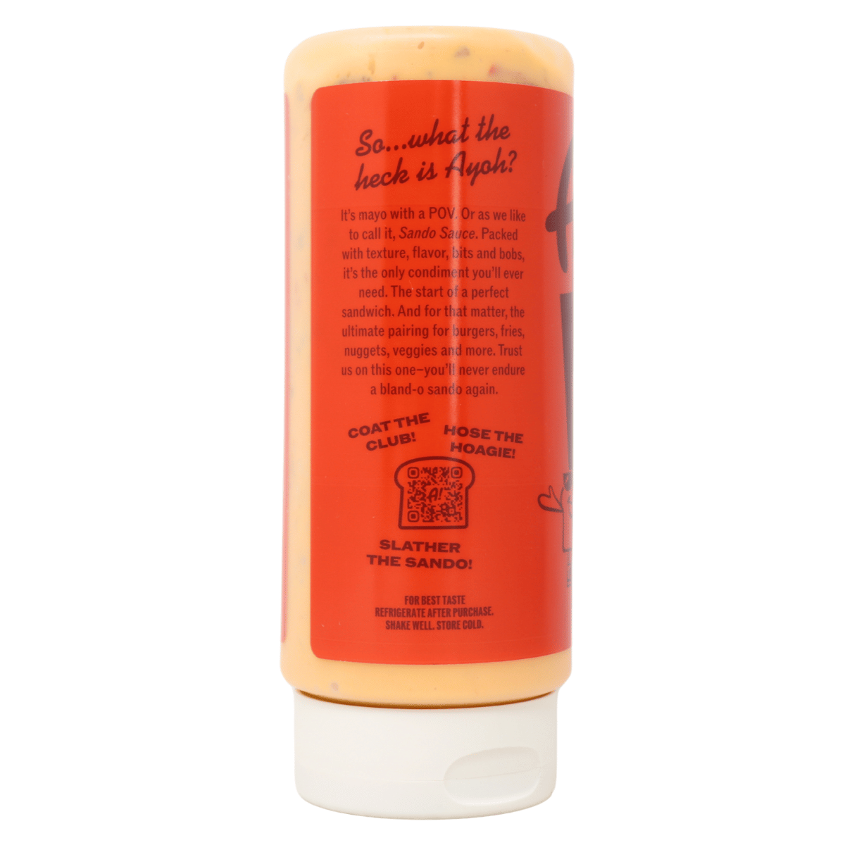 Ayoh Hot Giardinayo blends the bold, briny bite of traditional Italian giardiniera with a smooth, creamy cage-free egg mayo. It’s spicy, punchy, and layered with crunch thanks to a mix of pickled peppers, vegetables, and vinegar. Creamy, hot, and perfect for anyone who wants to ad a little heat & texture to their dish.