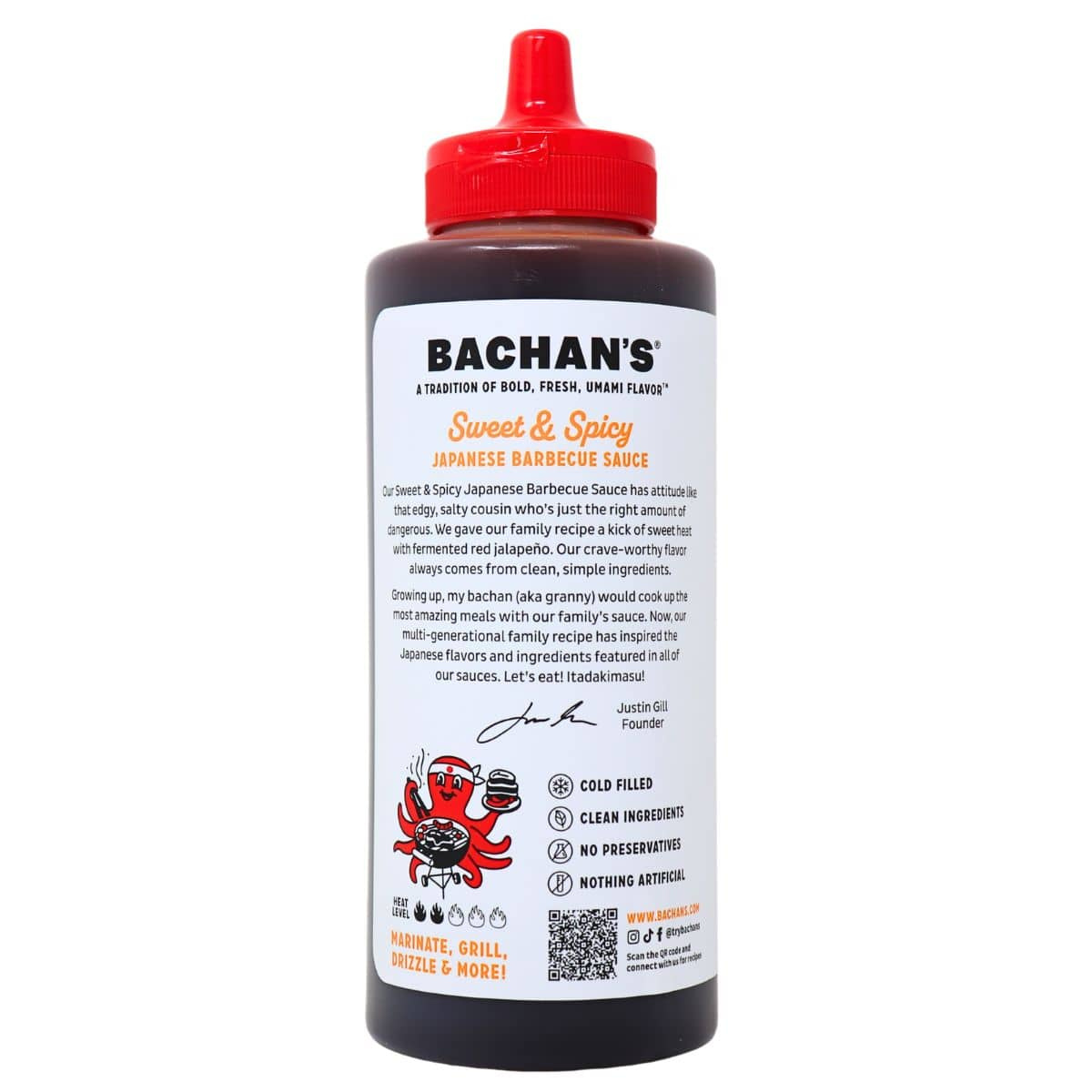 Bachan’s authentic Japanese barbecue sauce is the go-to sauce for those great umami flavours that you crave. Using real Japanese shoyu as its umami base and cane sugar and mirin as its complementary sweetness, it's the ultimate sauce or marinade for meat, fish, vegetables, rice, and everything in between! A perfect balance of sweet, salty, spicy, and savoury, all in one convenient bottle! Featuring green onion, ginger, and garlic, which offer complex savoury notes, and red jalapenos for mouthwatering heat, this Japanese sauce will elevate any and every dish you add it to. The easiest way to make every meal hearty and deeply satisfying...Bachan's brings the heat AND the flavour, are you ready for it?