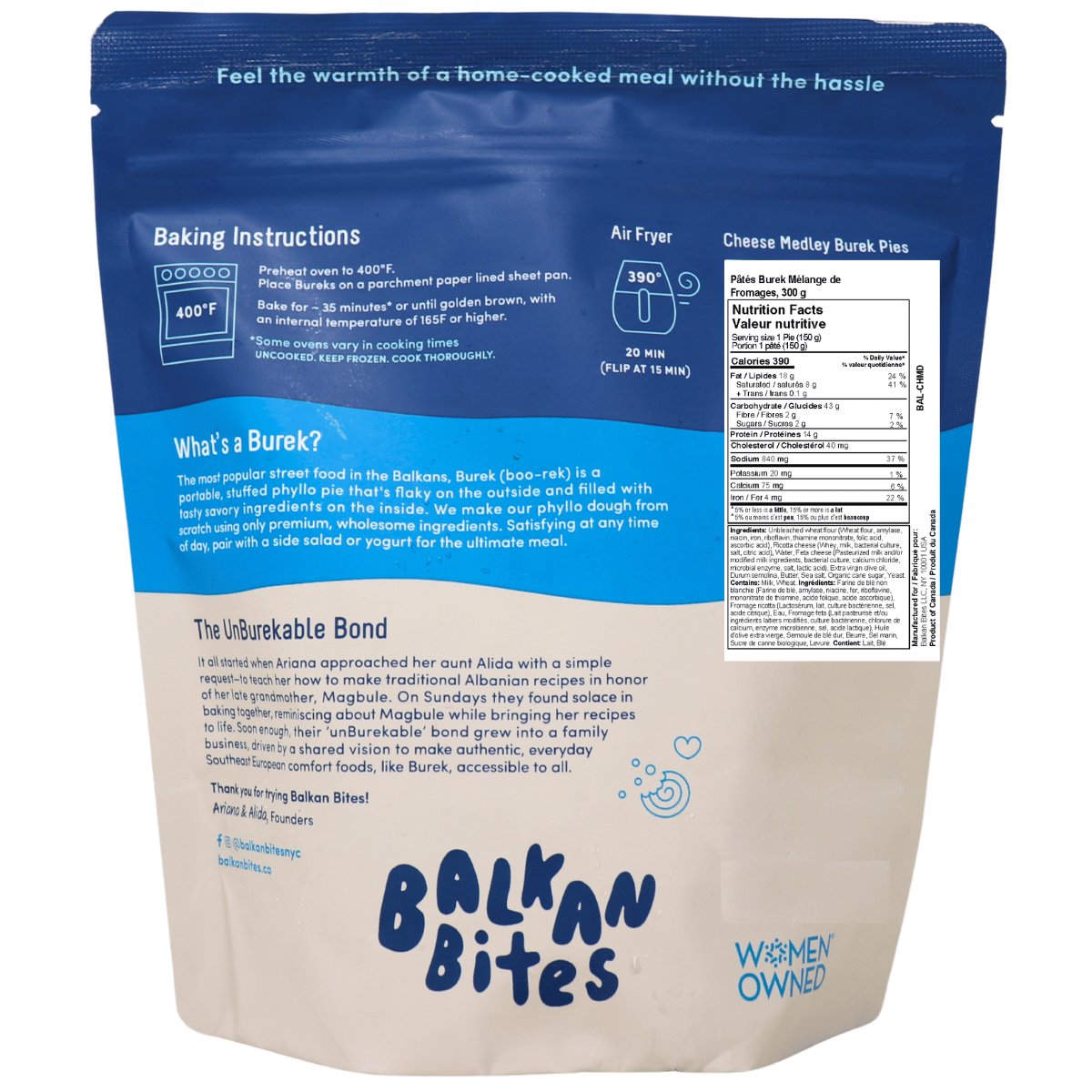 Balkan Bites makes every burek by hand using recipes passed down through their family, bringing traditional Balkan food into modern kitchens without losing what made it really special. This feta ricotta burek pie is perfect when you want something warm and flakey without spending hours at the stove. It goes straight from freezer to oven and comes out tasting like something you made from scratch.