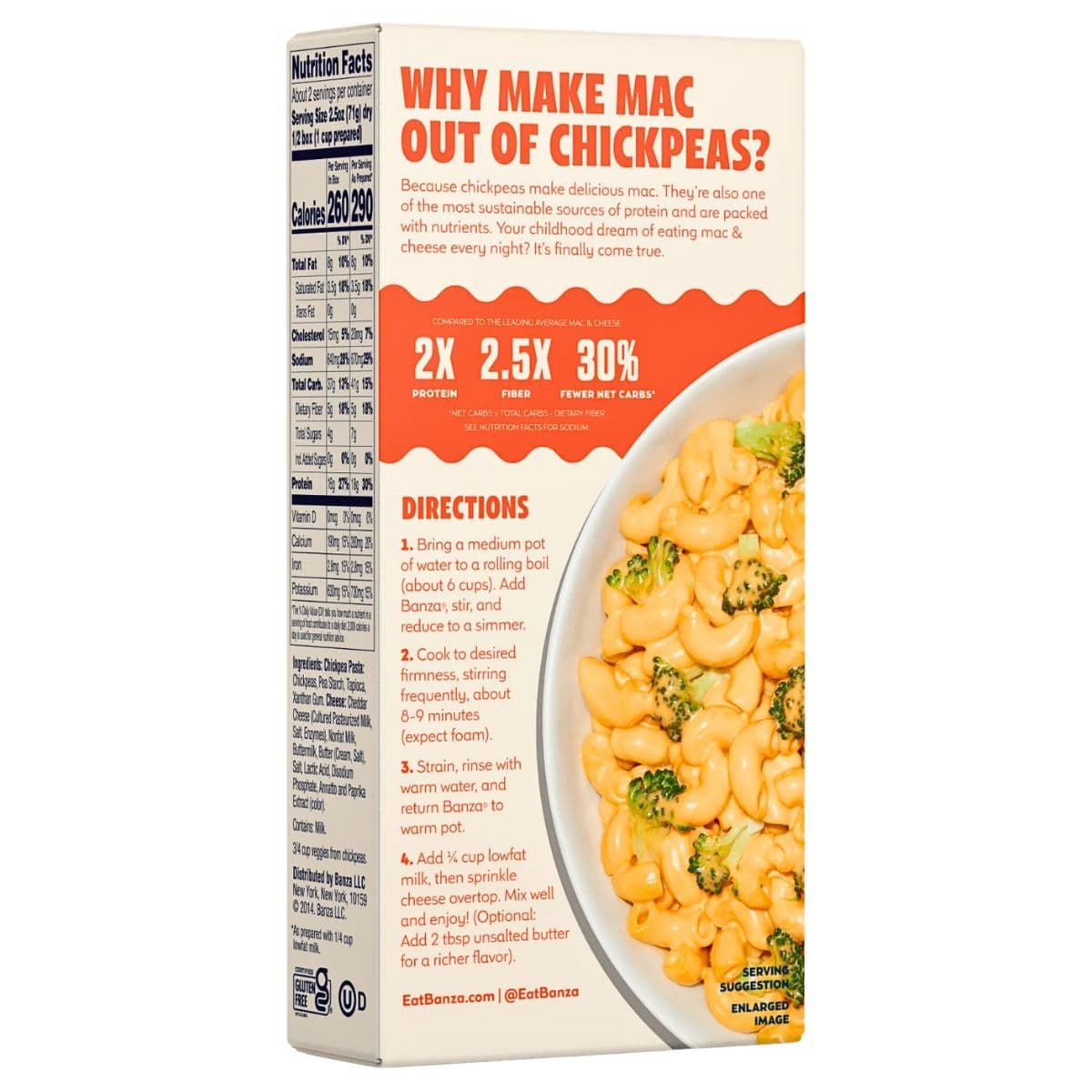 Name a more iconic duo than Macaroni and cheese? Trick question! There's nothing more iconic than this childhood classic! And, guess what? Banza is taking it to the next level with it's high-protein, gluten-free chickpea macaroni elbows! This macaroni and cheese is no ordinary mac & cheese, it has 16g of protein and 5g of fibre per serving! That's twice the protein and fibre than the leading competitors! Now, that's mac & cheese done right!