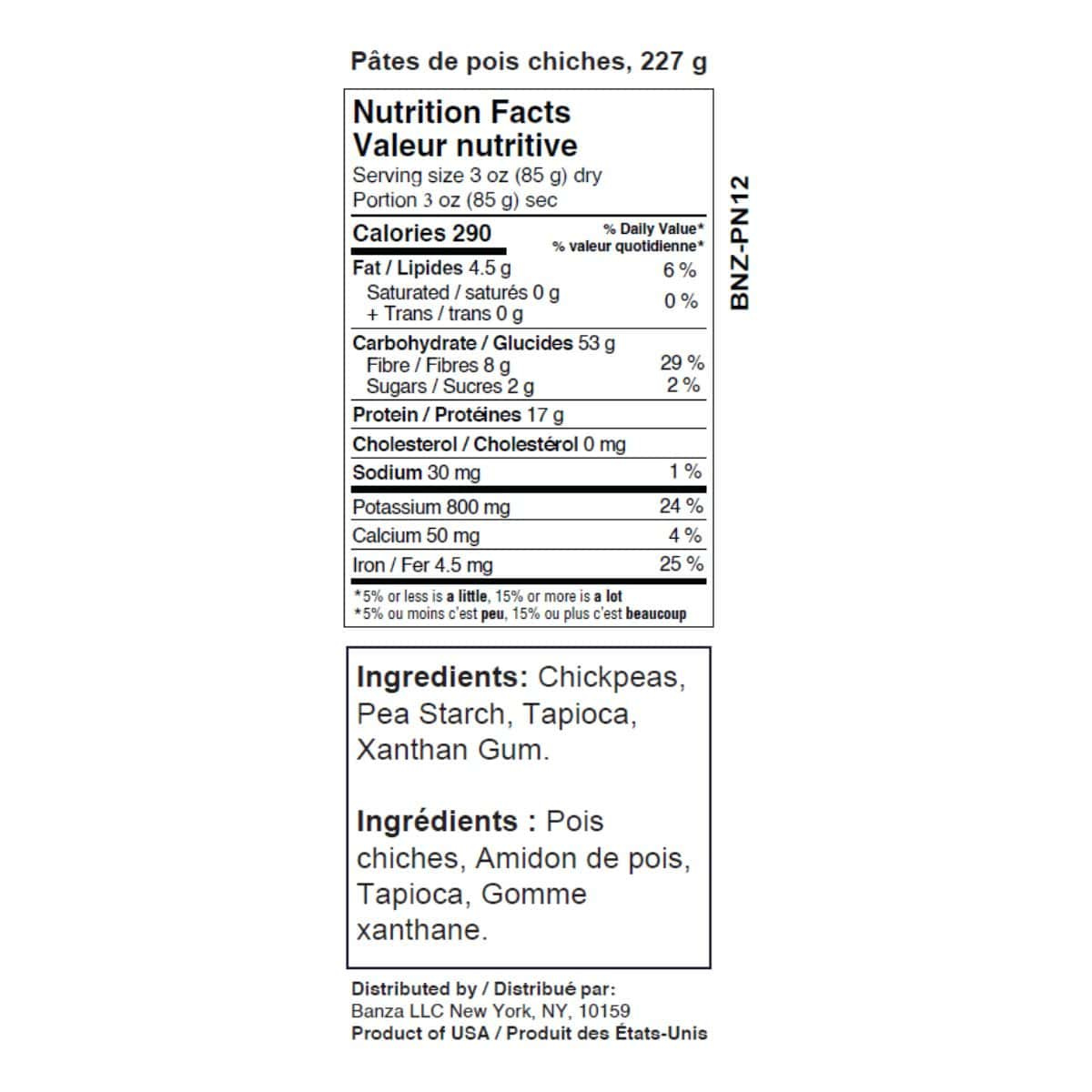 Chickpeas, Pea Starch, Tapioca, Xanthan Gum.