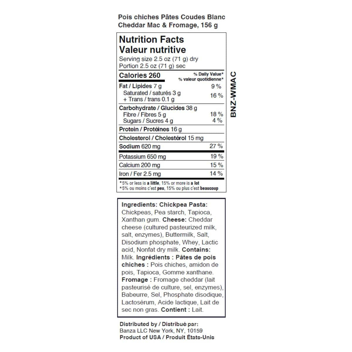 Banza Chickpea Pasta Elbows White Cheddar Mac & Cheese, 156g