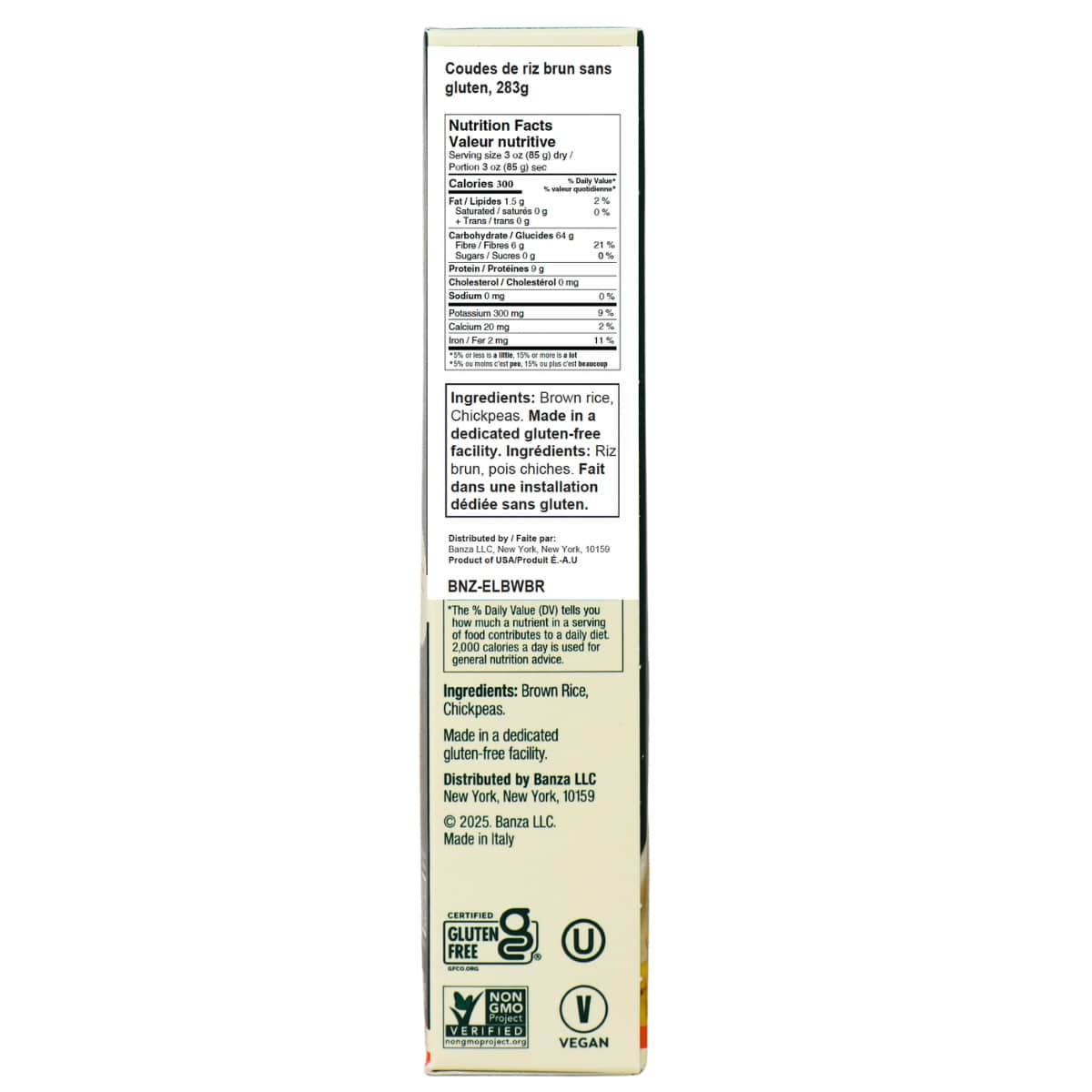 Banza Gluten-Free Brown Rice Elbows bring that classic, comforting pasta shape you know and love—now made with wholesome brown rice. Each bite delivers the perfect al dente texture and a flavour that pairs beautifully with any sauce, from creamy cheese to zesty tomato.