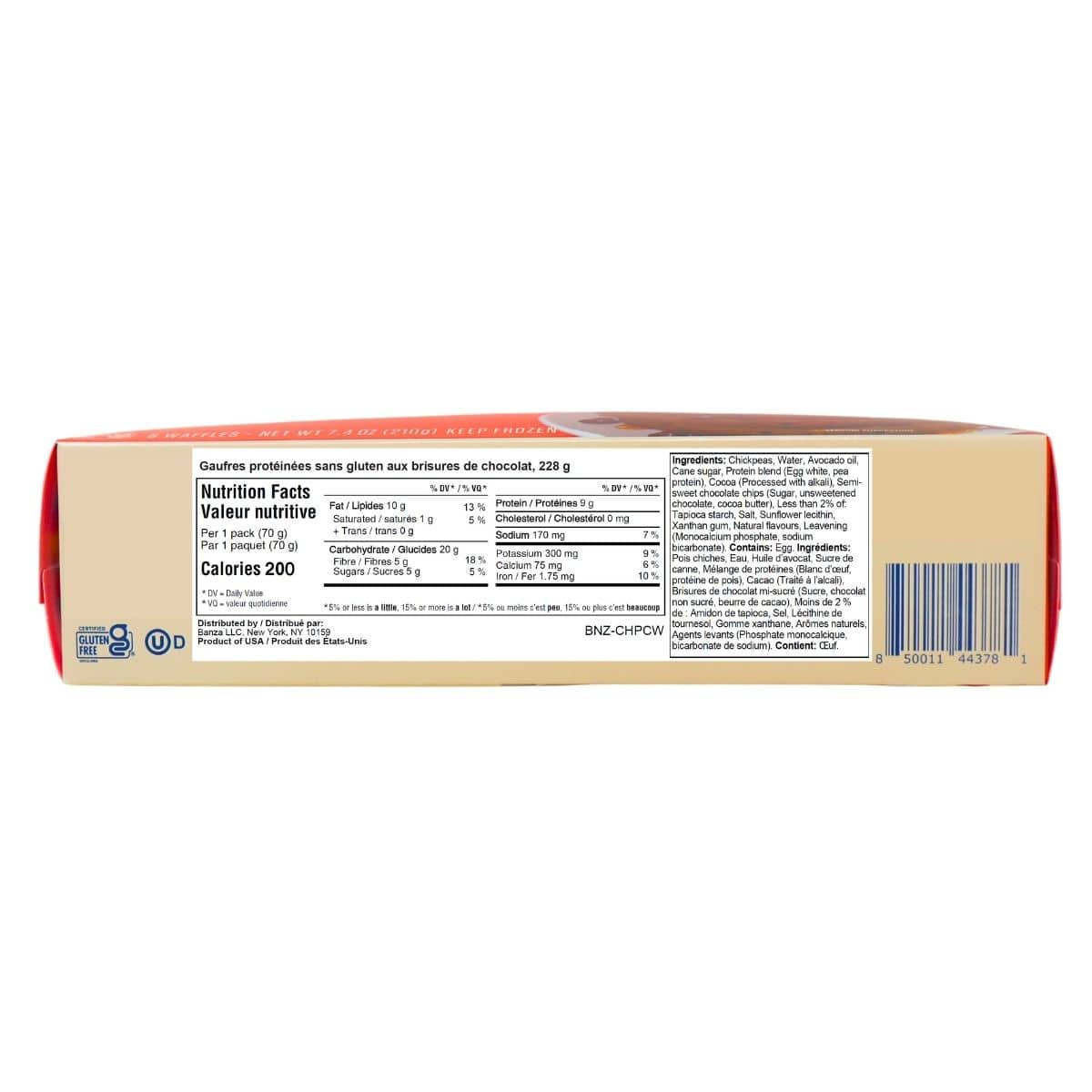 Crisp on the outside and soft in the centre, these waffles turn breakfast into something you’ll actually look forward to. Banza Chocolate Chip Protein Waffles are built on chickpeas, bringing more protein and fibre to every bite while keeping that familiar golden crunch. Each waffle cooks up evenly, holding its shape and texture without the crumble that’s common in gluten-free baking.