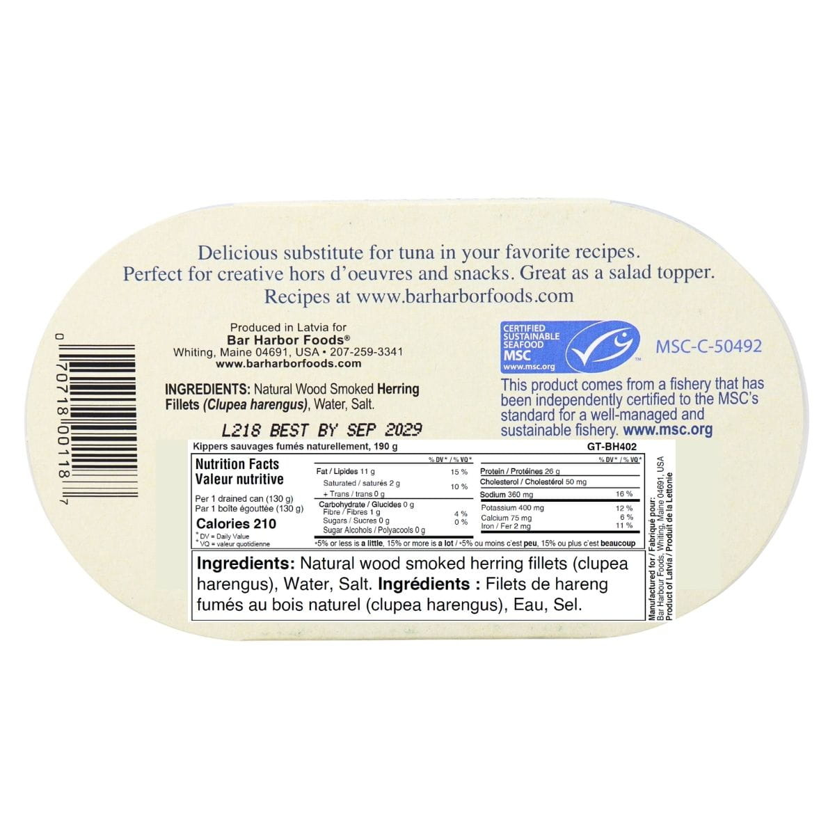 Savor the taste of the clear, cold waters of the Gulf of Maine while keeping hunger at bay with all-natural Bar Harbor Naturally Smoked Wild Kippered Herring Fillets, naturally wood smoked. Sustainably harvested and loaded with simple ingredients and fresh-from-the-sea flavor, these fillets are an excellent source of Omega-3 and protein. Packed in a BPA free container, and on top of that, ketogenic, paleo and AIP friendly, naturally gluten-free and kosher!