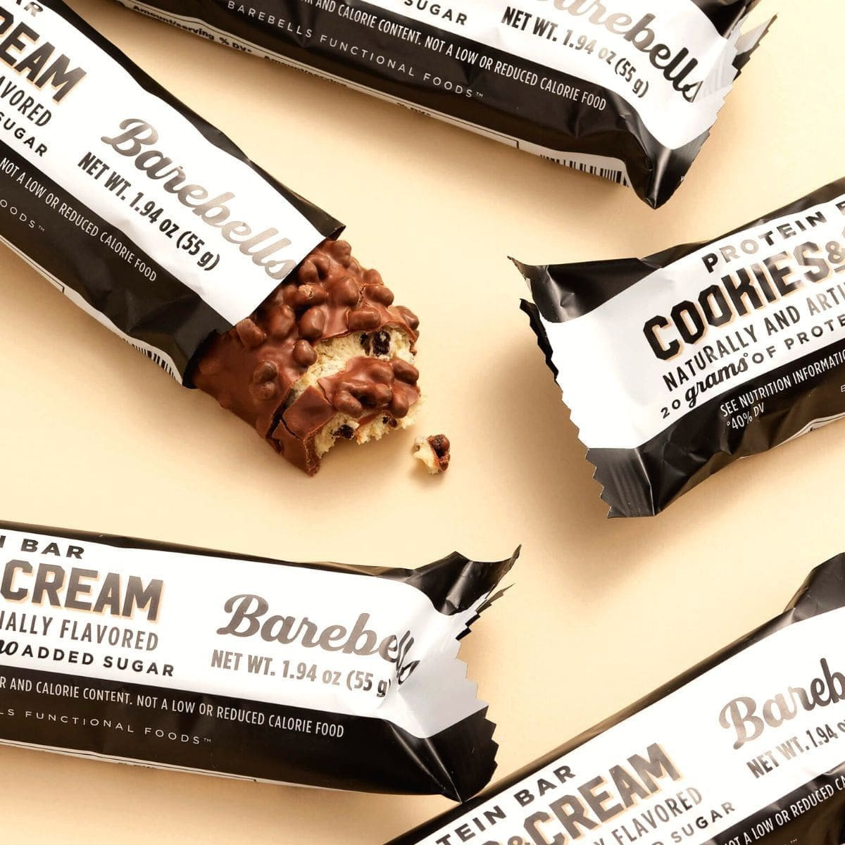 1 bar each of Barebells Protein Bar Salted Peanut Caramel, Caramel Cashew, Cookies & Cream, Chocolate Dough, White Chocolate Almond, and Vegan Hazelnut & Nougat (all 55 g each)
