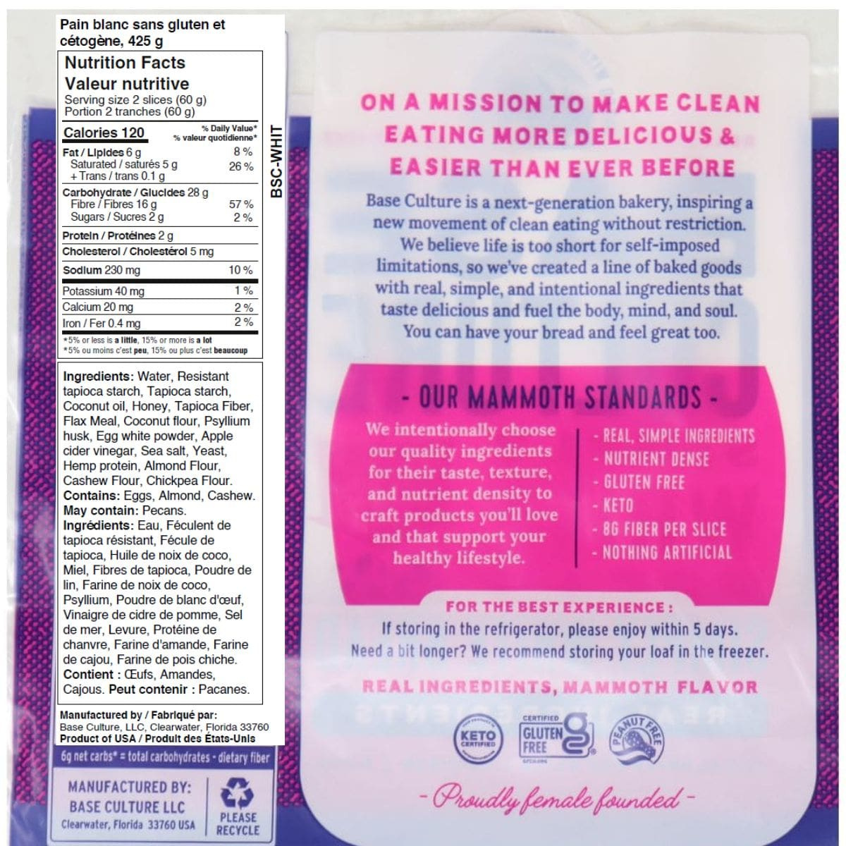 Quit loafin’ around, because Base Culture bread is here and it’s ‘bready’ for you! This isn't just any white bread. It's white bread, but better. Packed with 8g of fibre in each slice, this grain-free, gluten-free, paleo and keto bread is made with simple, high-quality ingredients that not only taste amazing but also pack a punch when it comes to texture and nutrient density. We're talking about ingredients that are beautifully simple in all the best ways. No fillers, no gums, and definitely no artificial nonsense. Let's toast to that!