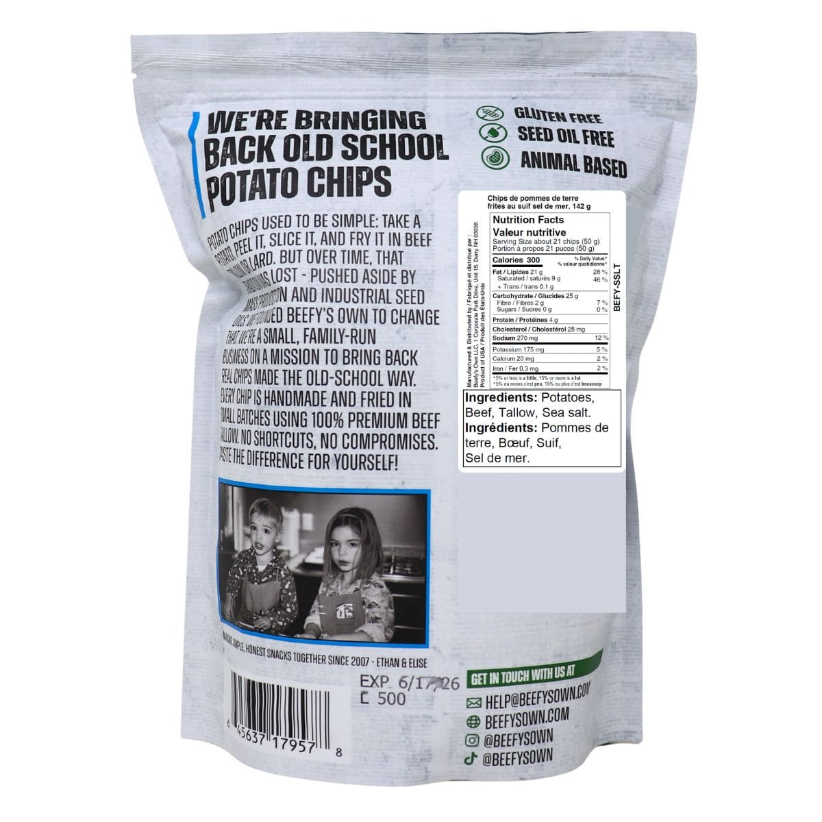 Beefy’s Own Sea Salt Beef Tallow Potato Chips are made for purists who appreciate real ingredients and traditional methods. Paired with sandwiches, served alongside meals, or enjoyed straight from the bag, they offer a bold return to how chips were meant to taste.