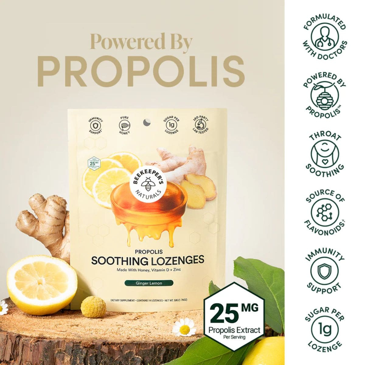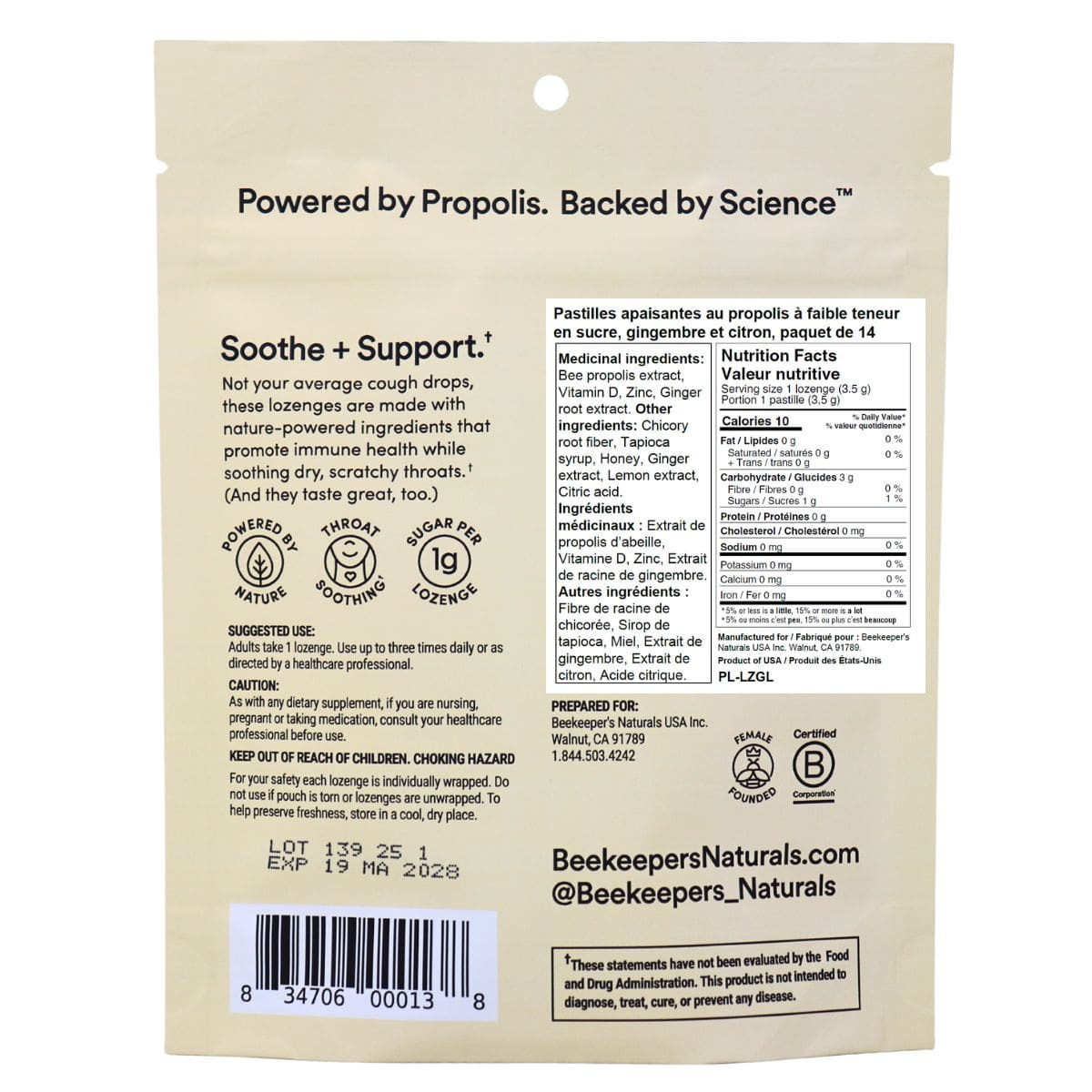 Beekeeper’s Naturals Low Sugar Propolis Soothing Lozenges Ginger Lemon, 14 Pack