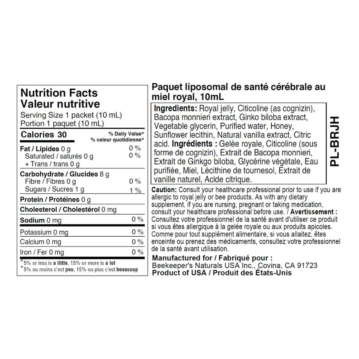 Give your brain the royal treatment with Beekeeper’s Naturals Royal Jelly, now in a great-tasting, more effective liposomal delivery system! With 250mg of royal jelly, this brain supporting supplement helps you to remember better, stay focused, and make sure your cognitive function stays in tip-top shape, all with a delicious hint of natural vanilla. With powerful cognition-supporting compounds like acetylcholine, 10-HDA, and 500 mg of Cognizin, a clinically proven ingredient that supports memory and fights age-related cognitive decline, Beekeeper's Naturals brain health royal jelly will blow your mind!