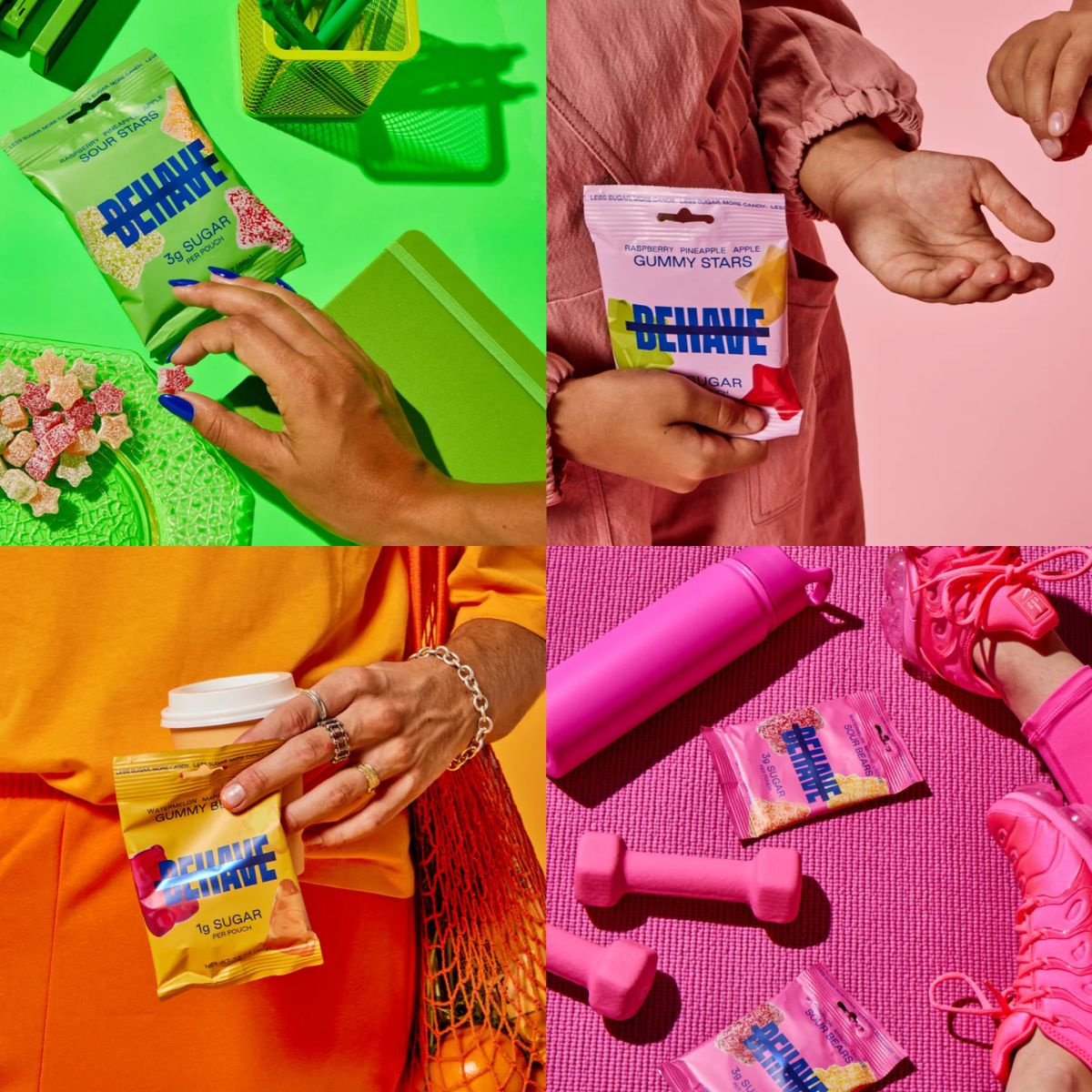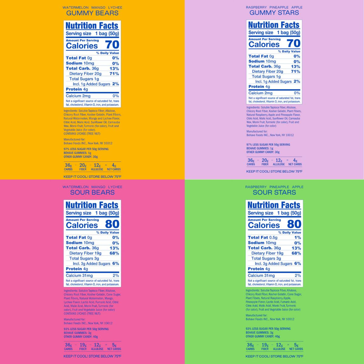 4 packs of BEHAVE Low Sugar Gummy Candy Variety Pack, 50g each