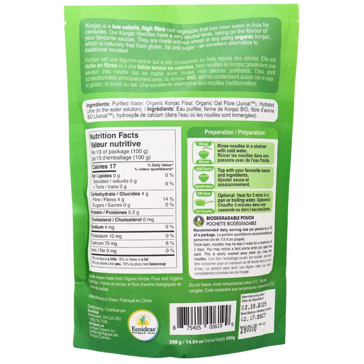 Bring noodles back into your diet with Better Than Foods Organic Konjac Noodles! Whether you’re looking to make a traditional chicken noodle soup or an authentic Lo Mein, you can count on Better Than Foods to bring you flavourful Konjac noodles that are low in calories and have 0 net carbs. Vegan friendly, these Konjac noodles add flavour, satisfaction and lots of fibre to any meal. Ready in minutes, you’ll always want to reach for Better Than Foods Konjac noodles for the perfect diet-friendly noodles.