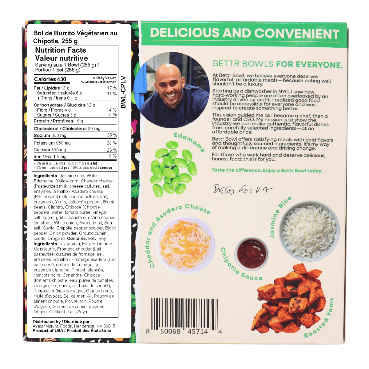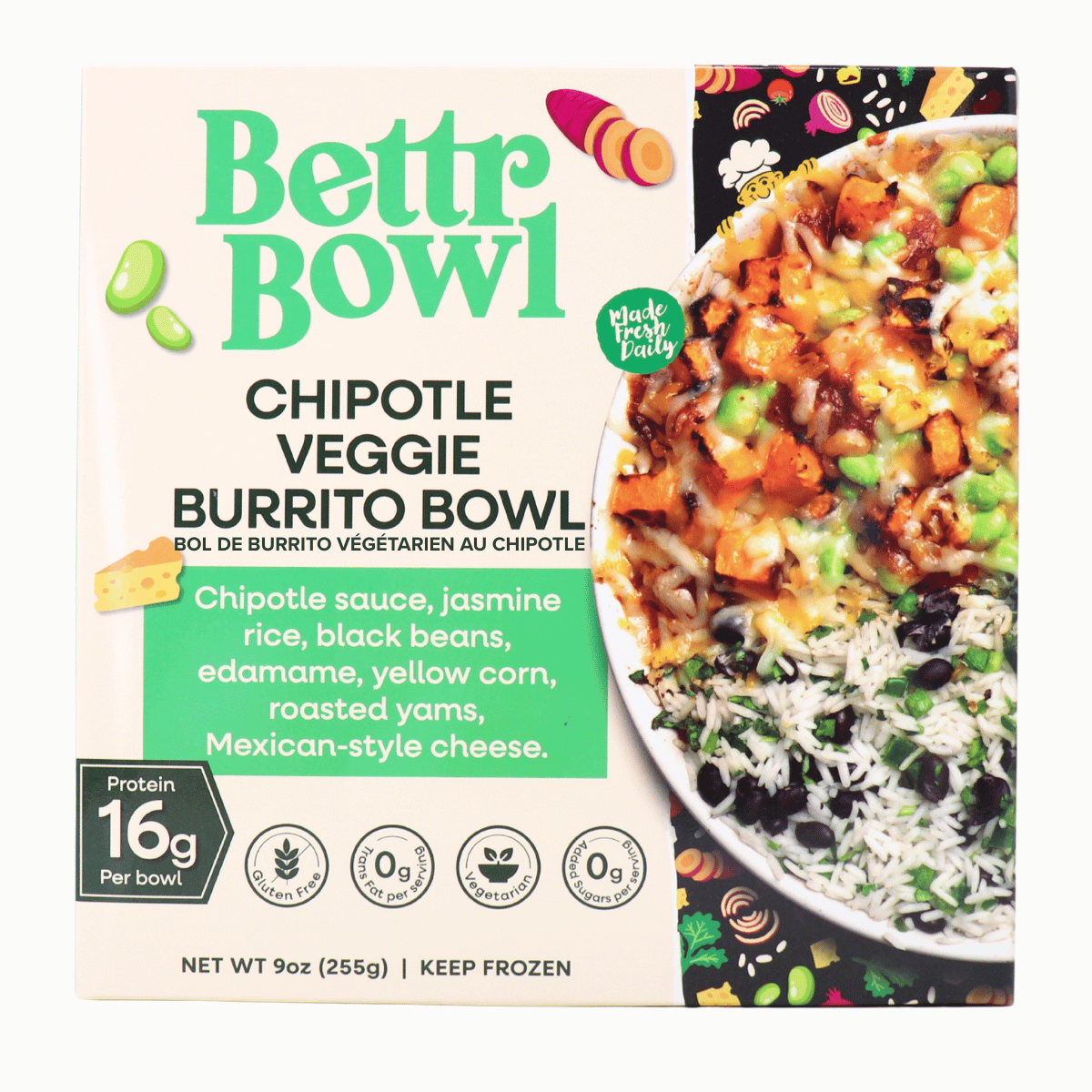 Smoky chipotle and wholesome veggies come together in a bowl that’s hearty, flavourful, and ready in just minutes. Bettr Bowl Chipotle Veggie Burrito Bowl is a vegetarian frozen meal that makes healthy eating simple, without sacrificing flavour or giving up your veggie roots.