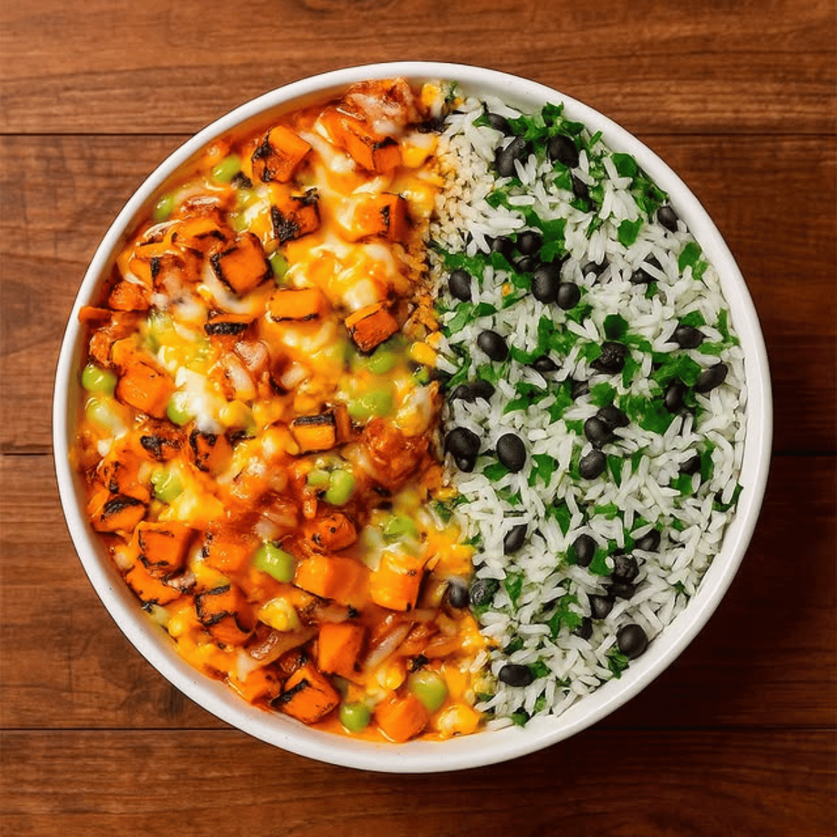 Jasmine rice, Water, Edamame, Yellow corn, Cheddar cheese (Pasteurized milk, cheese cultures, salt, enzymes, annatto), Asadero cheese (Pasteurized milk, cheese culture, salt, enzymes), Yams, Jalapeño pepper, Black beans, Cilantro, Chipotle (Chipotle peppers, water, tomato puree, vinegar, salt, sugar, garlic, canola oil), Vine ripened tomatoes, White onion, Avocado oil, Sea salt, Garlic, Chipotle pepper powder, Black pepper, Onion powder, Ground cumin seeds, Oregano.