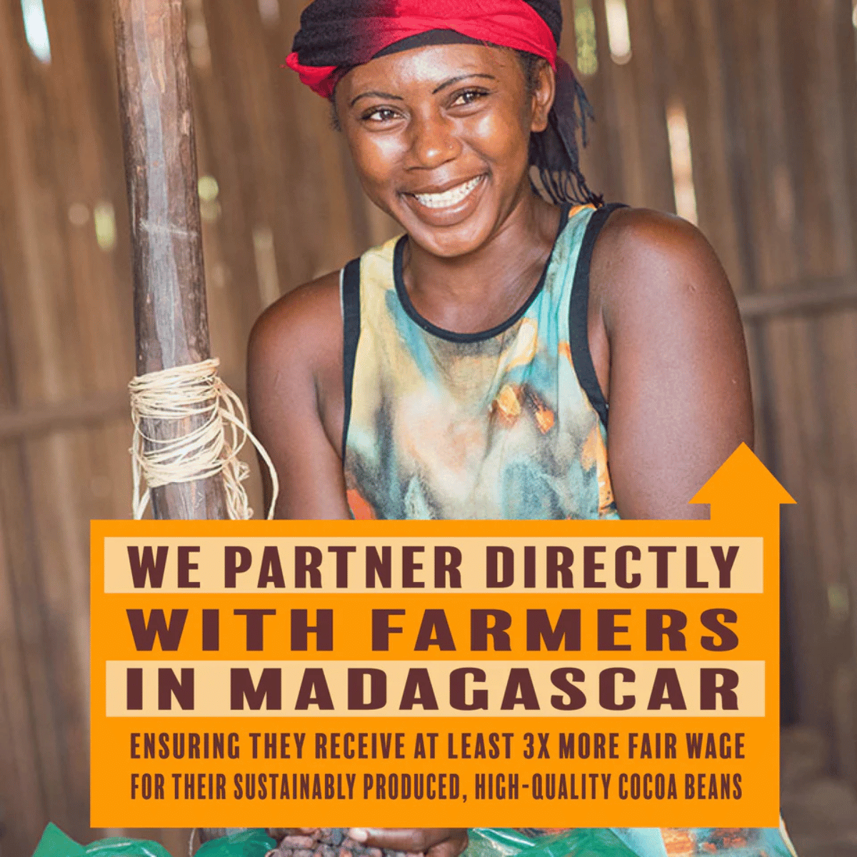 This is more than just chocolate. It’s a story of how sourcing can shape flavour, how traceability can build trust, and how good chocolate can do real good. Made using heirloom cacao grown in Madagascar and crafted at origin, this bar reflects the full intent behind the Beyond Good name. By producing their bars in Madagascar, not just sourcing from it, Beyond Good keeps more income and opportunity in the hands of local farmers and producers. That means shorter supply chains, more transparency, and fresher tasting chocolate.Â