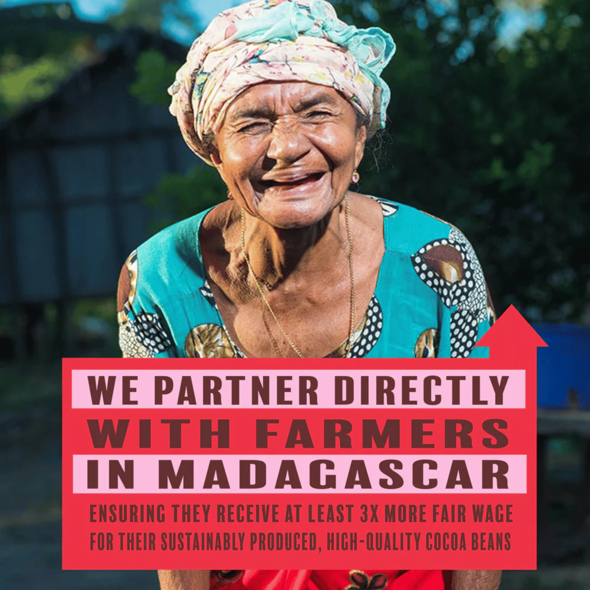 Like every bar from Beyond Good, this one is crafted in Madagascar using single origin cacao beans, not shipped off to another continent for processing. That means a shorter supply chain, fewer hands in the middle, and more impact for the farmers and makers who shape it from the start. Rich nutty hazelnuts, single origin cacao, all wrapped up in a Certified organic dark chocolate bar.