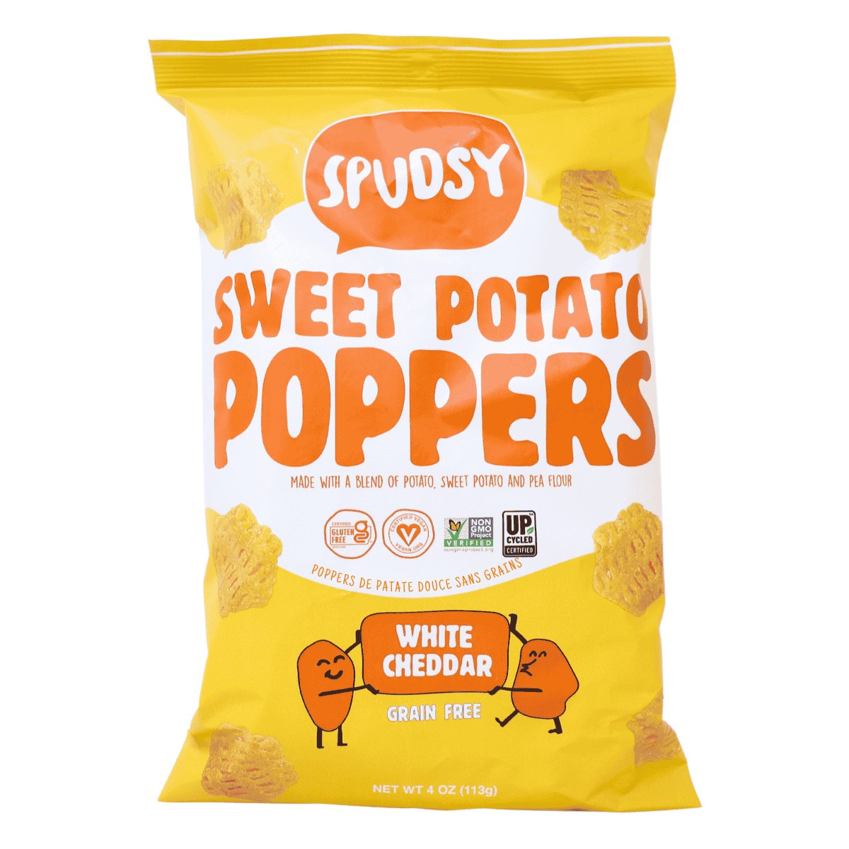 Spudsy Grain-Free Sweet Potato Poppers are the perfect crunchy, cheesy snack with a vegan white cheddar twist. Made with upcycled sweet potatoes, these airy bites are coated in a rich, dairy-free cheddar seasoning that delivers big flavor without the guilt. Gluten-free, grain-free, and kosher, they’re a great choice for cheese lovers looking for a better-for-you alternative to traditional snacks. Whether you’re snacking on the go or pairing them with your favorite dip, these poppers are a delicious way to satisfy your cravings.