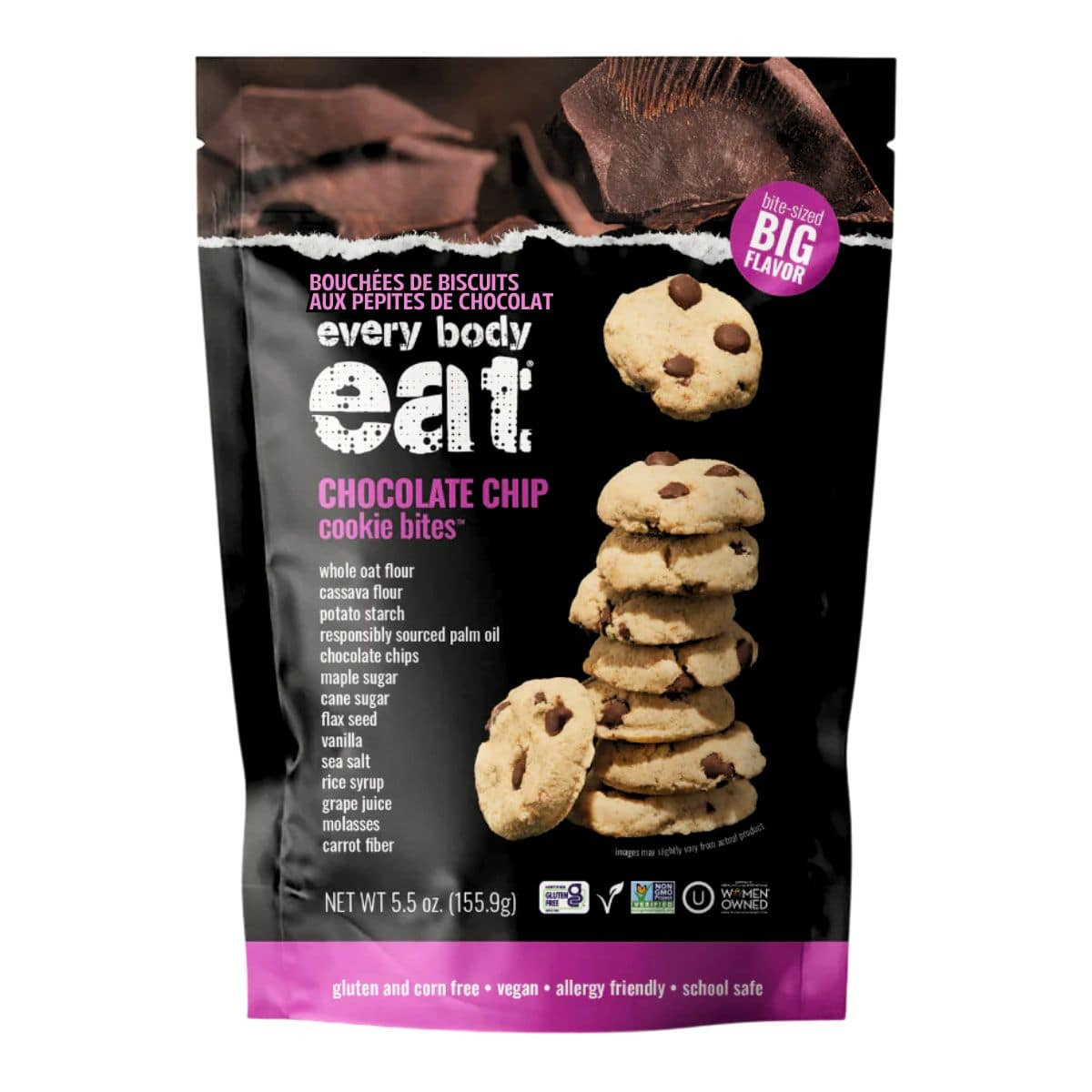 Unlike traditional cookies, Every Body Eat Cookie Bites offer a clean, simple ingredient list without artificial additives or preservatives. The combination of naturally sourced sweeteners, responsibly sourced chocolate chips, and wholesome flours makes them a snack that everyone can enjoy, regardless of dietary restrictions.Â