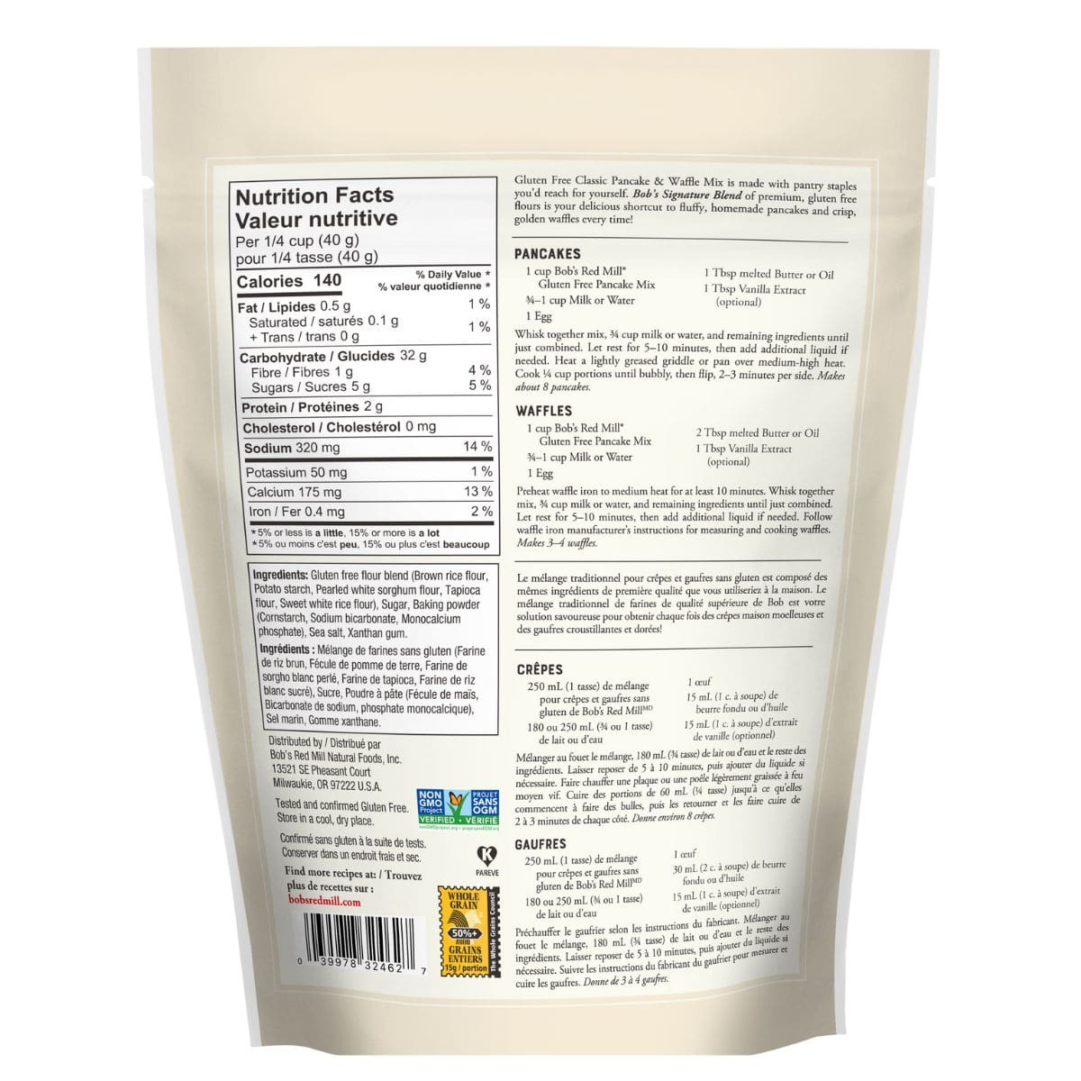 Breakfast just got better with Bob's Red Mill Gluten-Free Pancake Mix! This pancake mix makes light and fluffy pancakes that are absolute show-stoppers. Paired with a delicious syrup or your favourite spread, these pancakes are irresistible! Made with a unique and tested blend of whole-grain and gluten-free flours, this mix has the best taste and texture of any gluten-free pancake mixes out there. Whether you use it to create pancakes, waffles, donuts, cakes and more, you can trust that this dairy-free mix will give you the flavours that you're looking for!