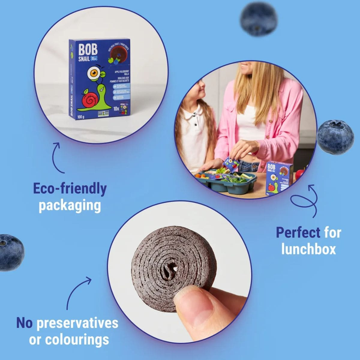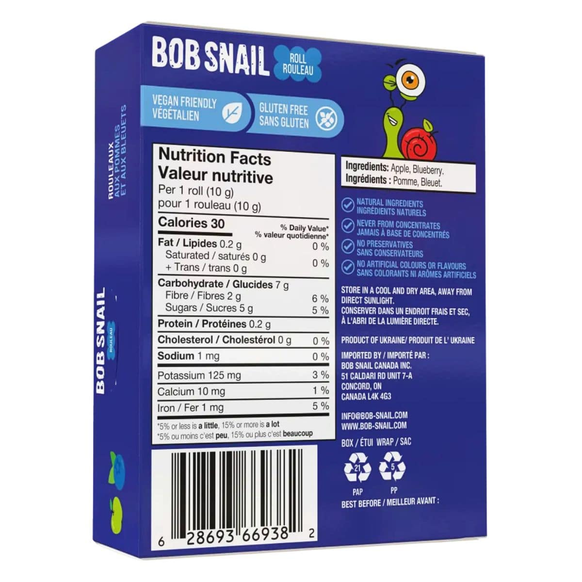 Good things take time, and Bob Snail’s takes things to a snail’s pace level of slow to make these delicious all-natural fruit snacks! With just two ingredients–juicy apples and plump blueberries that have been handpicked by Bob himself (yes, he's a snail with impeccable taste!)–these dried fruit snacks are slowly baked to bring out the natural sweetness and delicious flavour of real fruits! With no added sugar, Bob Snail’s healthy fruit leather rolls have really ‘snailed’ it!