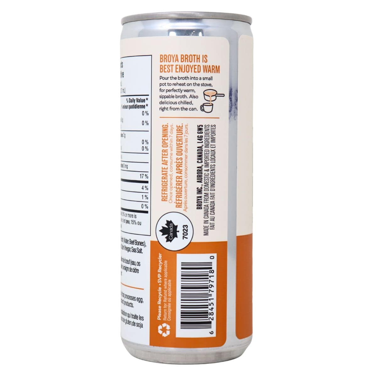 Broya’s beef bone broth is here to make your life a whole lot cozier, a whole lot tastier, and a whole lot more comforting. Made exclusively with 100% grass-fed beef bones from Canadian farms, every sip is rich, savoury, and oh-so delicious. No more endless hours of simmering and stirring–with Broya, all you have to do is pop the top on this ready-to-drink bone broth can, and you’ve got instant comfort bliss right at your fingertips. Sip, savor, and let the worries of the world melt away as you relish every drop of this grass-fed beef bone broth.