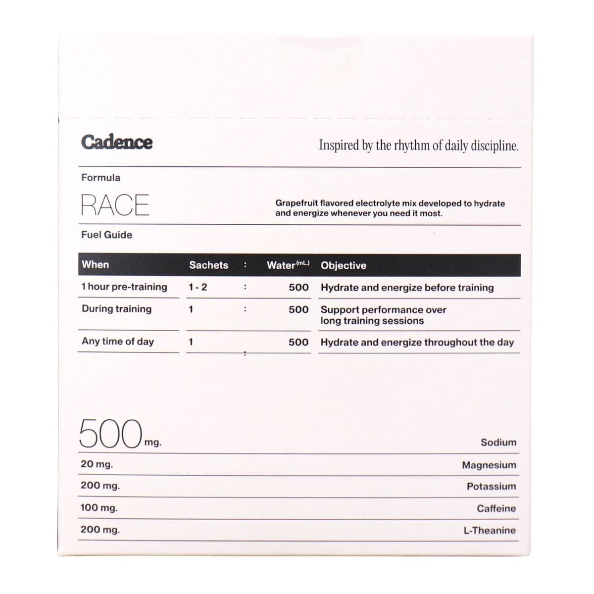 Built for endurance and performance, Cadence Race Caffeinated Electrolyte Supplement Grapefruit delivers clean, focused energy and full-spectrum hydration in every mix. Each sachet provides 500mg of sodium plus added potassium, magnesium, and a natural caffeine boost for sustained power without sugar or artificial ingredients.