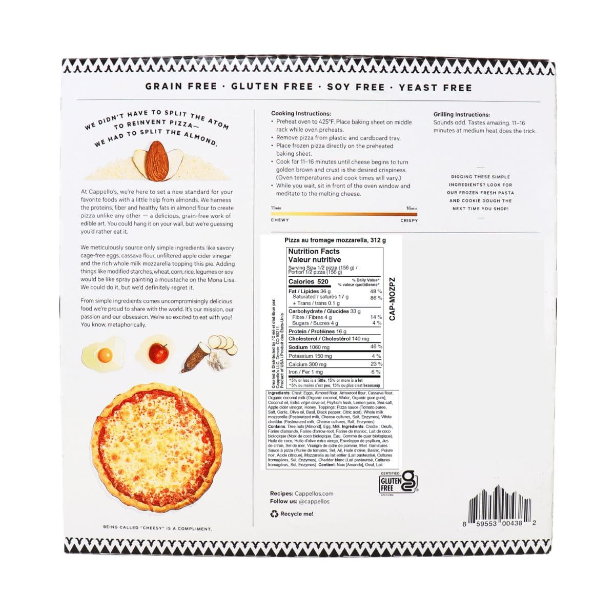 Talking with your mouth full is a no-no, but when the pizza is this good, who can help themselves? Cappello’s whole milk mozzarella cheese pizza isn’t just any frozen pizza, it’s the pizza you’ll keep coming back to—again and again. Creamy, melt-in-your-mouth mozzarella and an almond flour pizza crust that’s crispy on the outside, soft on the inside, it’s a grain-free and gluten-free pizza made right. With no seed oils and packed with 16g of protein, Cappello’s mozzarella pizza is a cheesy dream come true.