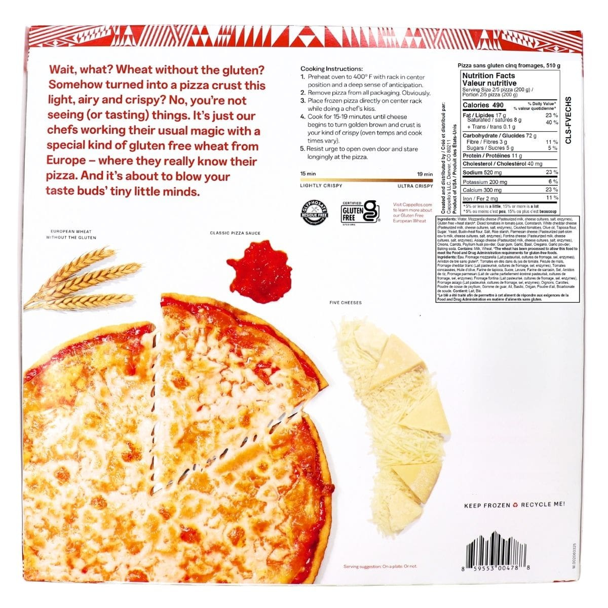 Five cheeses, one ultra-crispy bite. Cappello’s Crispy Five Cheese Pizza is all about bold flavour and golden edges, crafted with a clean gluten-free crust that delivers the perfect crunch. Baked to a delicate crisp and topped with mozzarella, provolone, asiago, romano, and parmesan, every slice melts into a rich, savoury mix of sharp and creamy cheese with that classic marinara sauce.