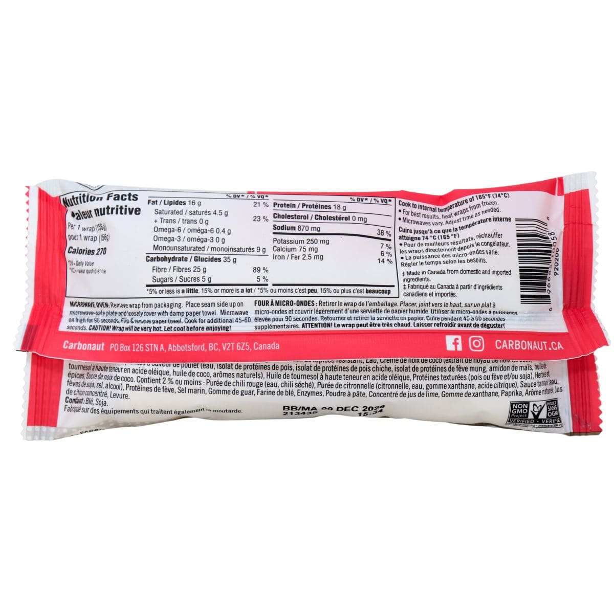 Warm curry comfort meets plant-based convenience in your new favourite frozen wrap. Carbonaut Plant-Based Thai Red Curry Wrap delivers bold Thai-inspired seasoning with savoury depth, vegetables, and plant-based protein, all wrapped in a soft low-carb flour tortilla.