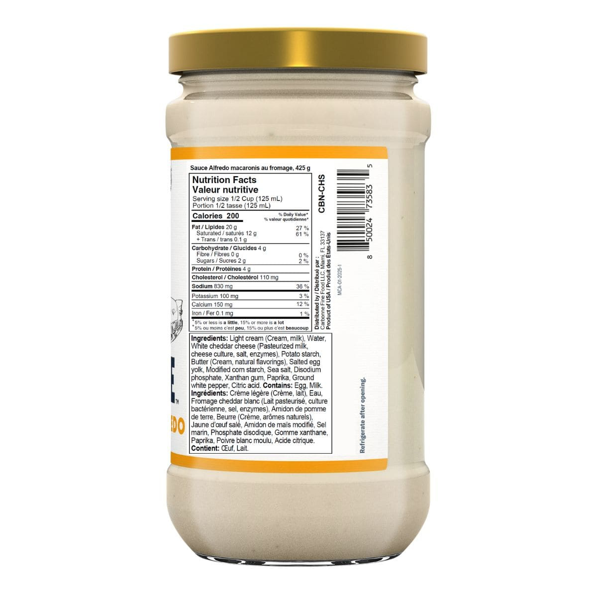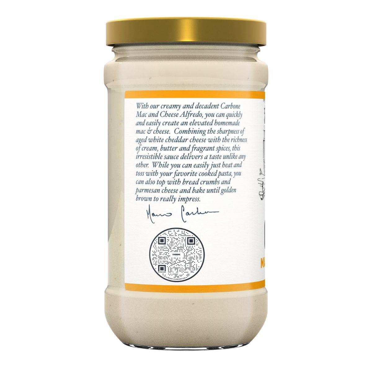 Sharp cheese melts into creamy sauce for a rich, savoury bite that’s pure comfort. Carbone Mac & Cheese Alfredo Sauce takes the silky base of Alfredo and builds on it with sharp, melty cheese for a flavour that’s bold, savoury, and full of that cheesy goodness you need. Crafted by Carbone’s chefs, it turns a familiar favourite into something elevated.