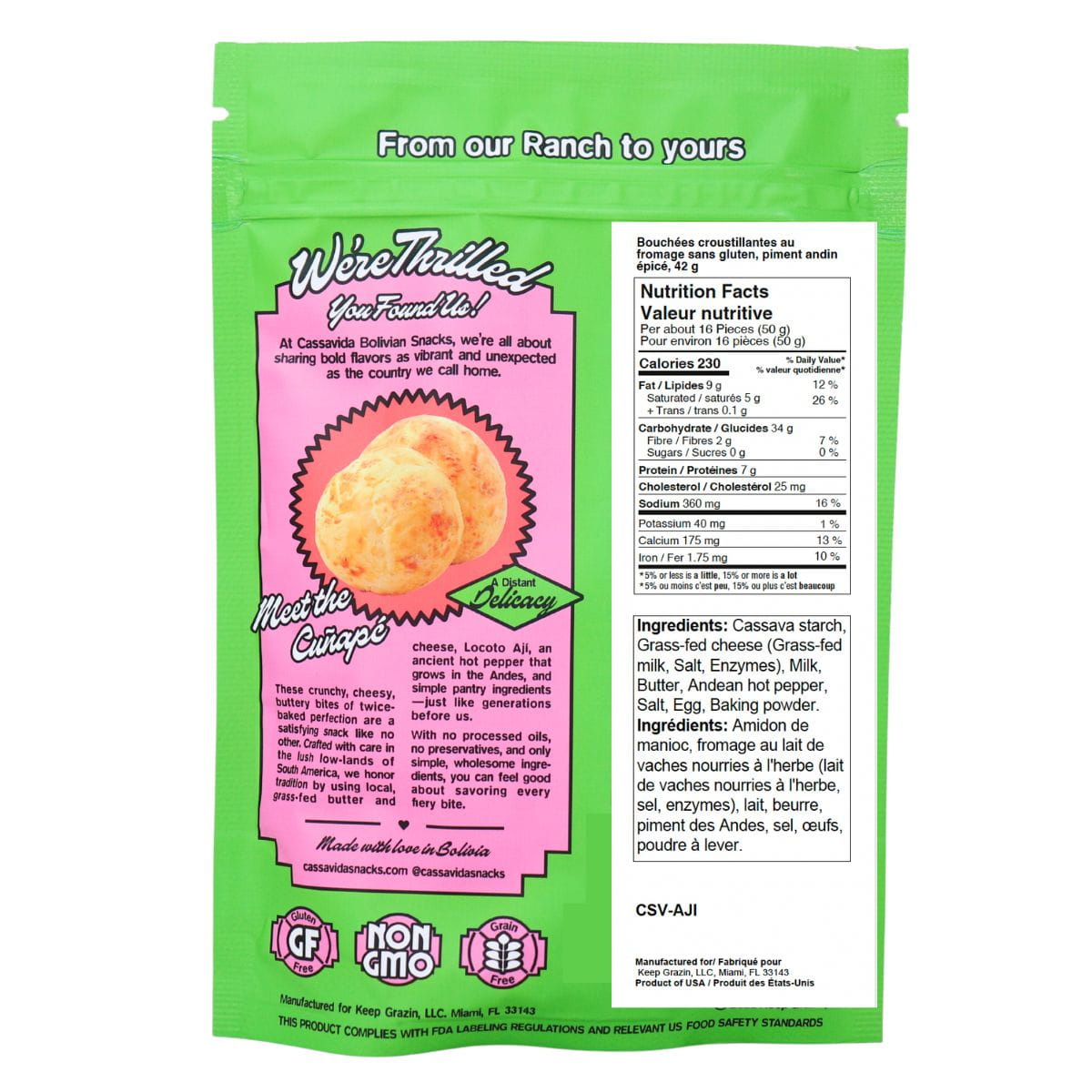 Cassavida Gluten-Free Crunchy Cheese Bites Spicy Andean Aji deliver a fiery twist on classic cheese snacking. Infused with Andean aji pepper, these bites offer a bright, zesty heat that builds gently without overpowering the rich, savoury cheese base.