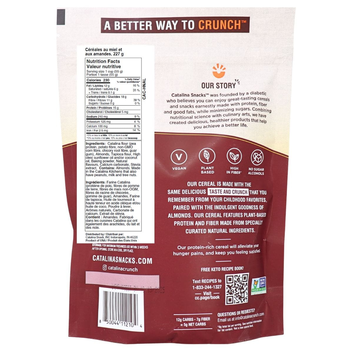 Honey nut cereal with roasted almonds, Catalina Crunch and you…some things are just meant to be together! That’s why Catalina Crunch’s Pairings cereal brings the golden warmth and sweet aroma of vegan honey with the toasty crunch of roasted almonds for a truly perfect pair! Packed with 10g of plant-based protein and 7g of fibre per serving, this keto-friendly cereal is designed to keep you feeling fuller for longer, so you can leave those mid-morning munchies in the dust. Made with clean, natural ingredients—no artificial sweeteners, flavours, or colours—Catalina Crunch cereal ensures your mornings are both delicious and wholesome! It’s the perfect match, just like you and the great day ahead!