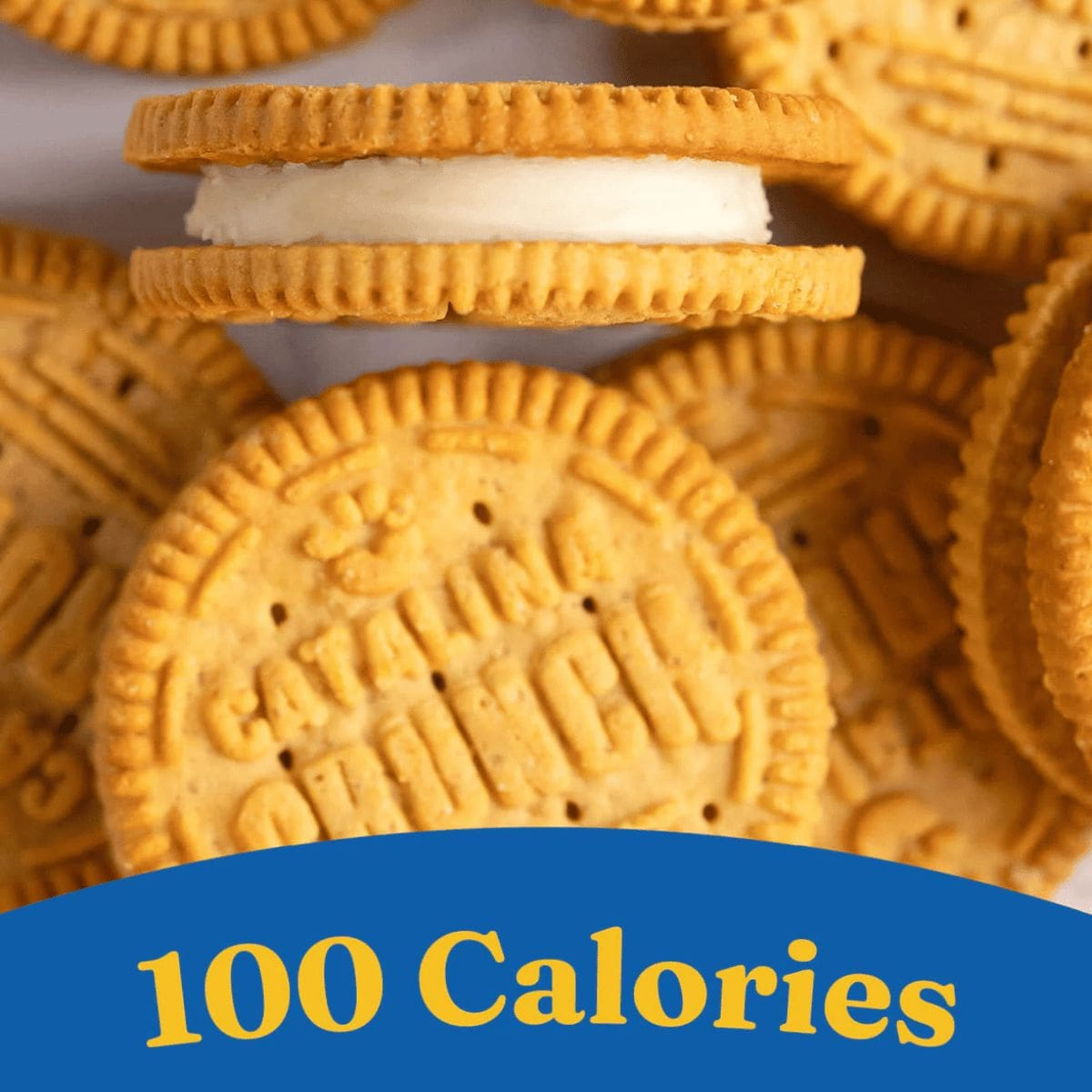 Catalina Crunch Vanilla Sandwich Cookies, 120 g – Palm oil, Pea protein, Allulose, Sugar, Cassava flour, Tapioca starch, Chicory root fiber, Natural flavours, Xanthan gum, Sunflower lecithin, Sea salt, Baking soda, Stevia extract, Monk fruit extract.