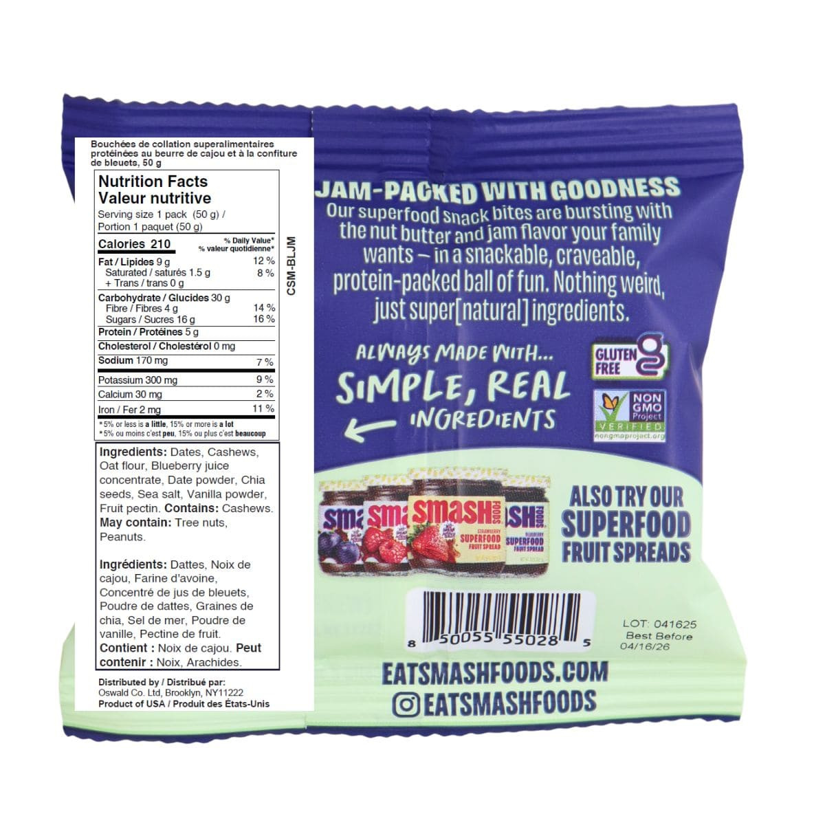 Smash Foods Protein Superfood Snack Bites Cashew Butter + Blueberry Jam, 5 Bites