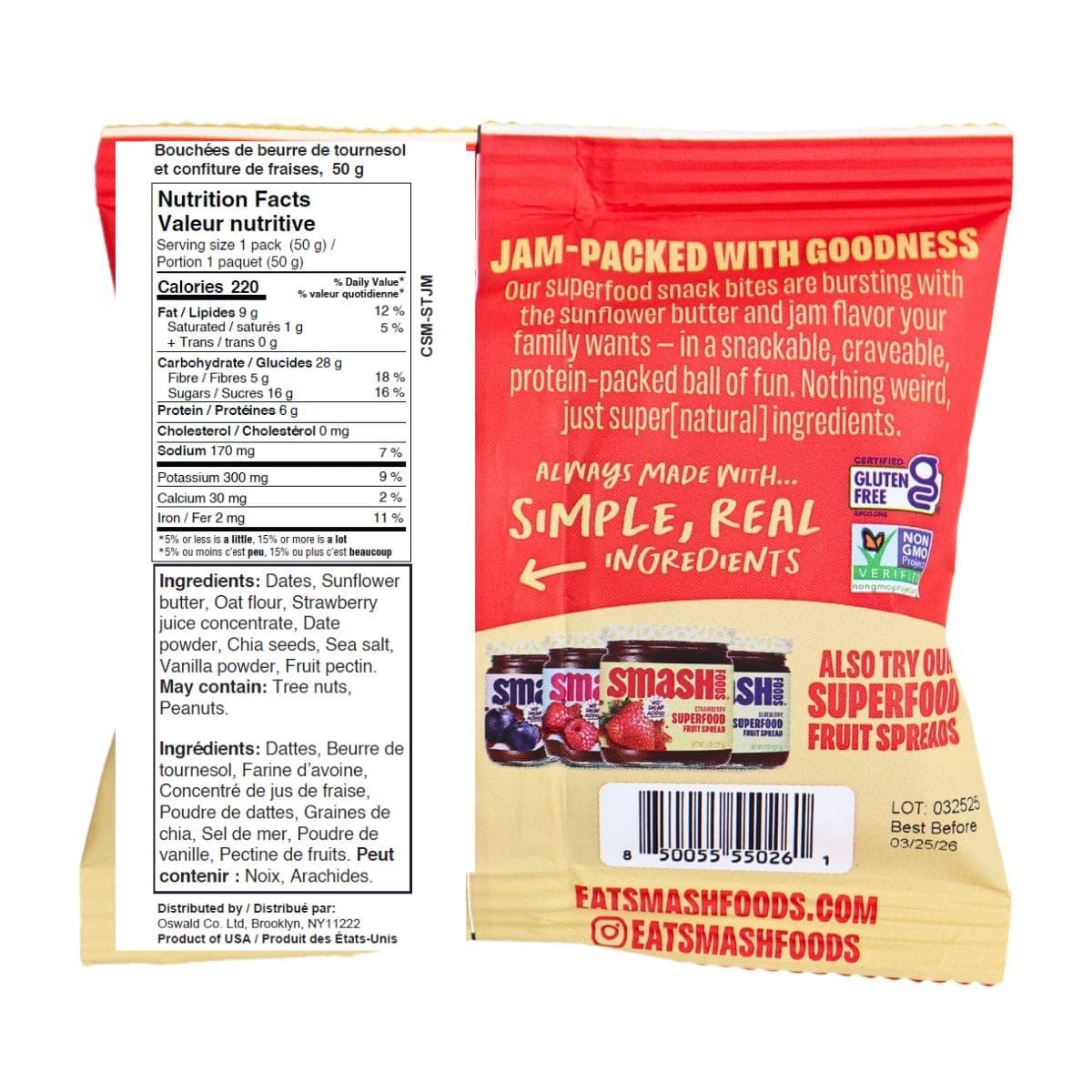 Chia Smash’s Smash Bites have combined creamy sunflower butter and a sweet strawberry jam filling into one poppable, bite-sized protein energy bite! Jam-packed with 4g of fibre and 6g of plant-based protein, Smash Bites are snackable, craveable, and definitely smash-worthy. Made with just a handful of superfood ingredients like chia seeds and oats, and lightly sweetened with dates, you got a vegan, gluten-free, and nut-free protein bite that tastes even better than your classic PB & J--and it's ready to jam out whenever, wherever you are. Are you ready to rock your snack world?