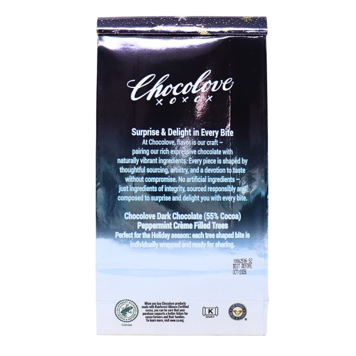 We know what’s on your Christmas list this year...Chocolove dark chocolate peppermint creme bites! These bites are individually wrapped to allow you to practice opening gifts this holiday season. They’re free of GMOs, rainforest alliance certified and great as stocking stuffers. These peppermint creme bites are so good they will have you jingling all the way!