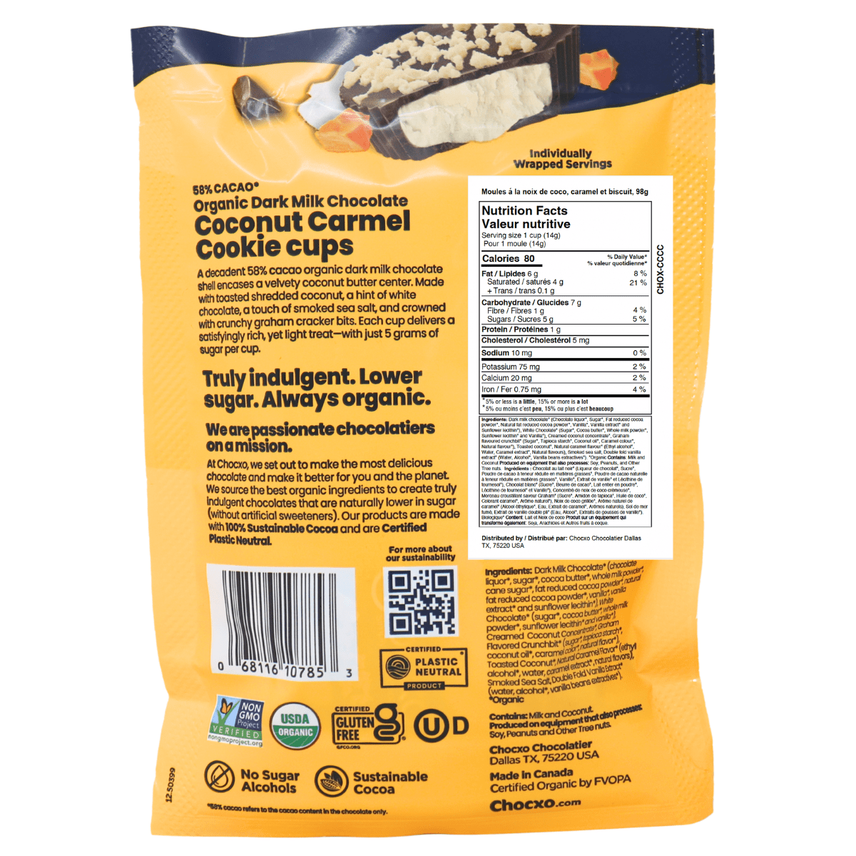 ChocXO 58% Dark Milk Chocolate Coconut Caramel Cookie Cups, 98g