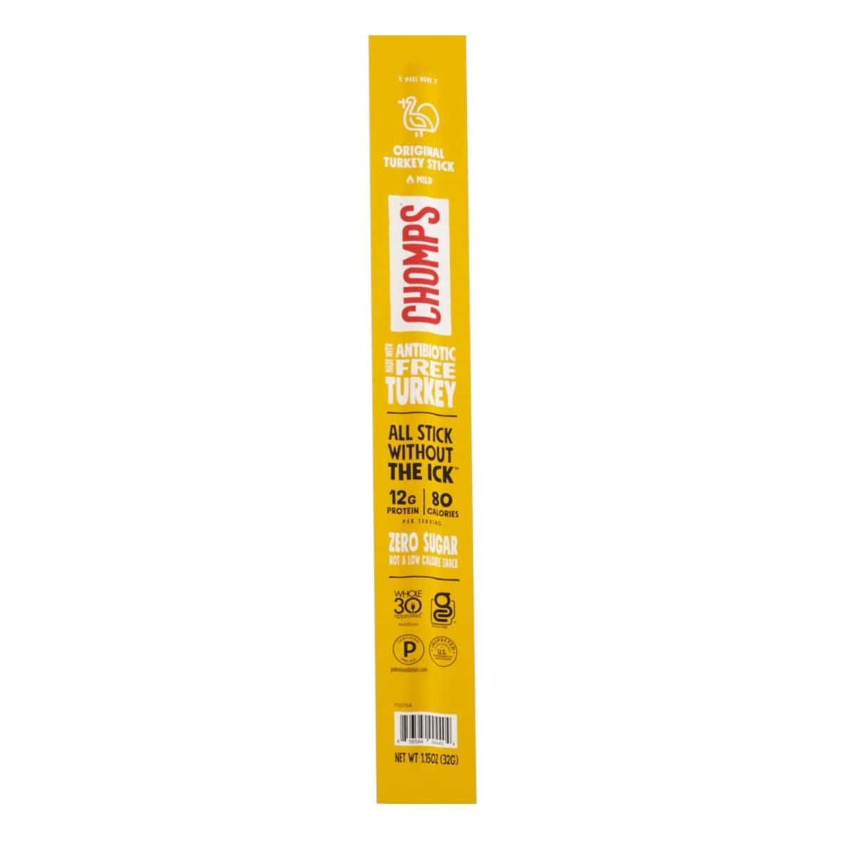 6 individual sticks of Chomps Turkey Original, 32 g each.