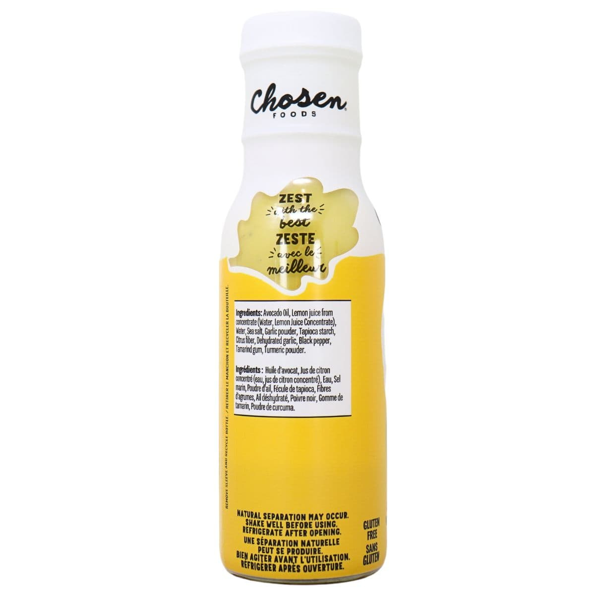 Chosen Foods Lemon Garlic Dressing reveals sun-drenched flavor in every bite. With fresh-squeezed lemon, real garlic, and a dash of salt in a base of pure avocado oil, this recipe is the ultimate go-to dressing for all of your healthy meals.